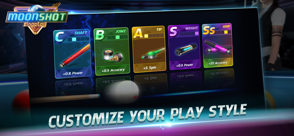 Unlike other pool games, Moonshot offers playing pool (a.k.a pocket