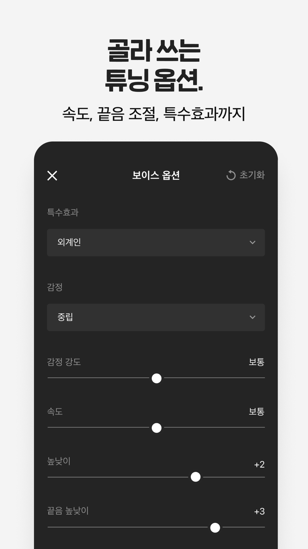속도, 높낮이, 끝음 조절 등의 옵션,