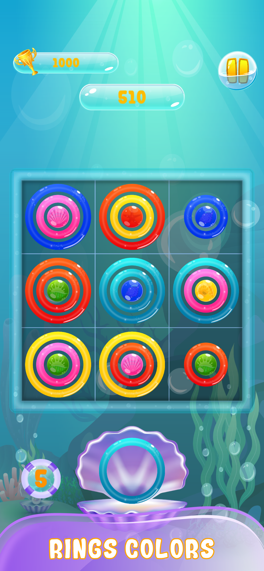 • Once you fill rings in a vertical or horizontal or diagonal line with same color, it will disappear and freeing up space for new rings.