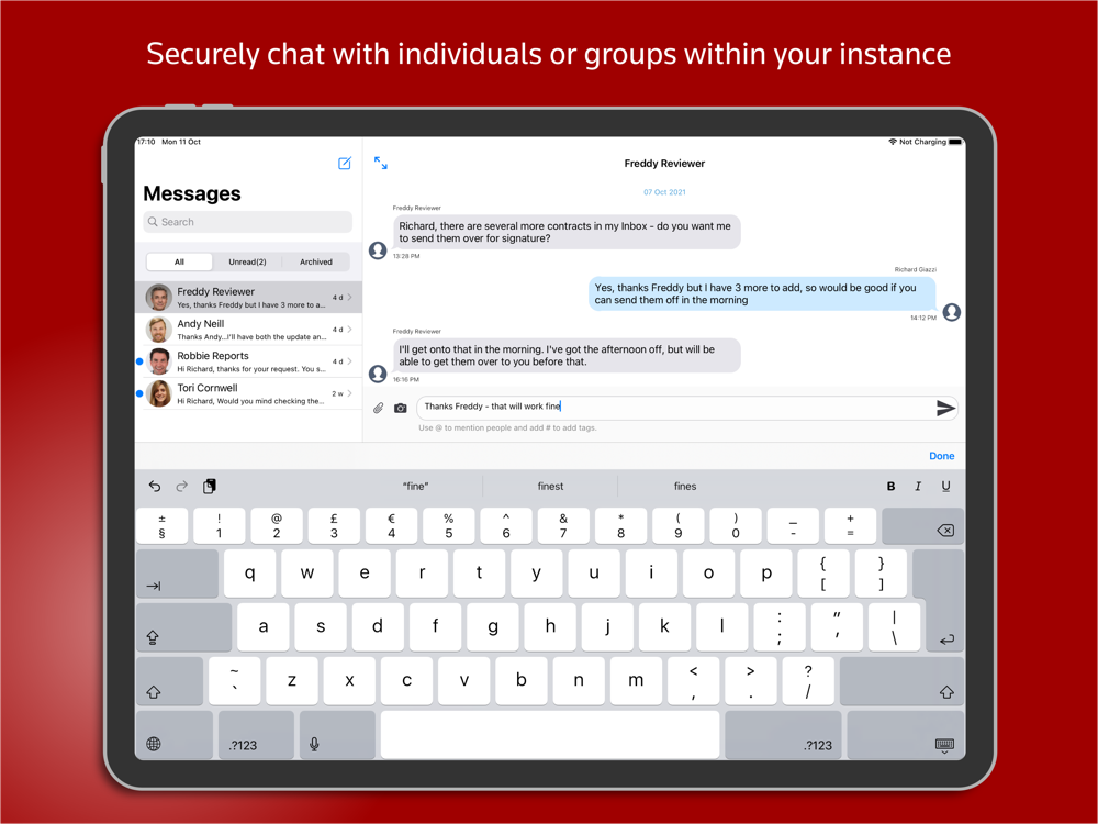 • All chat/messages and activities fully synchronised between the app and the HighQ platform.