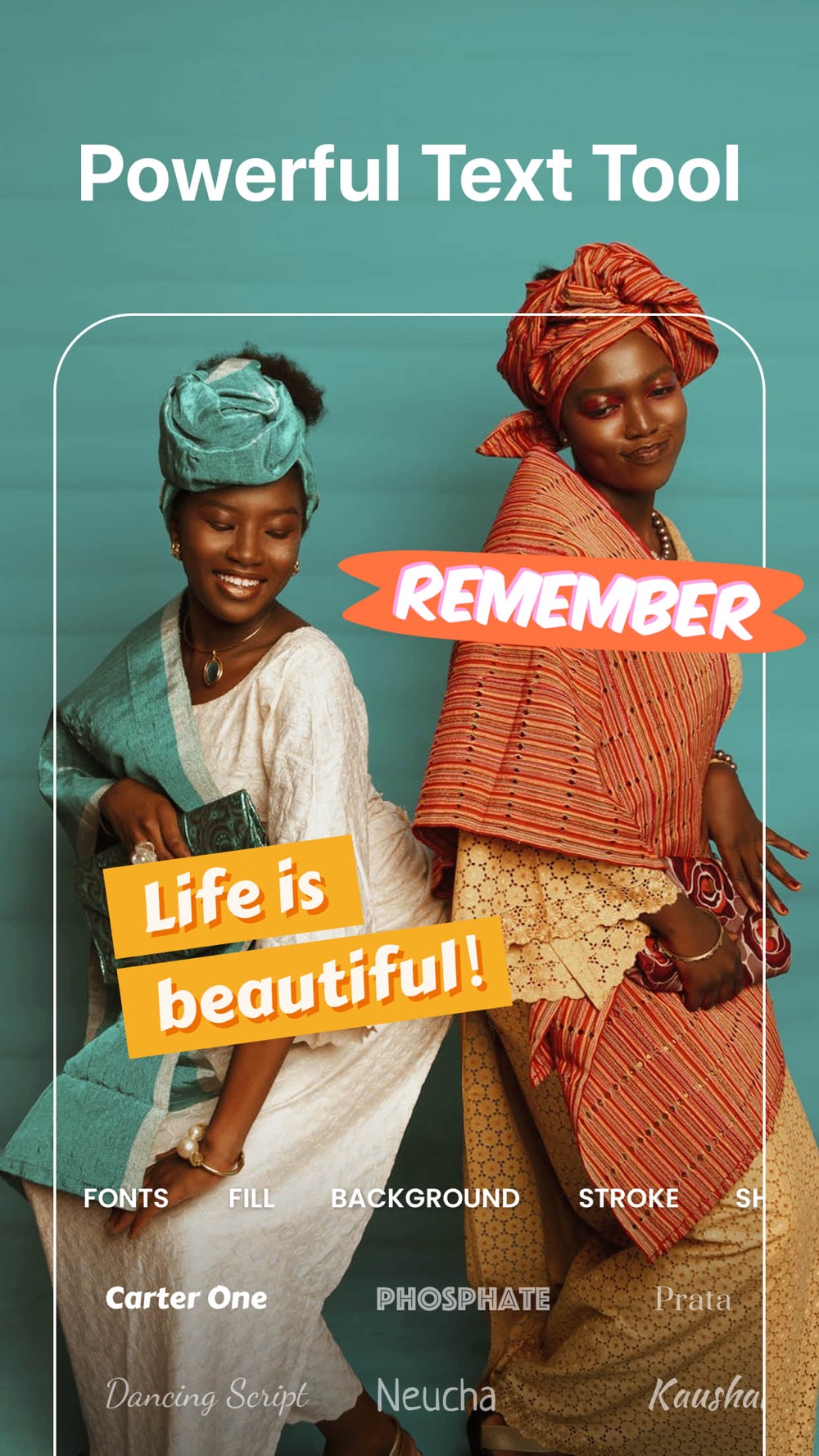 - Awesome Fonts and Texts: Hundreds of colorful fonts and fancy text are at your service. You can even create your own fonts with the convenient toolkit.