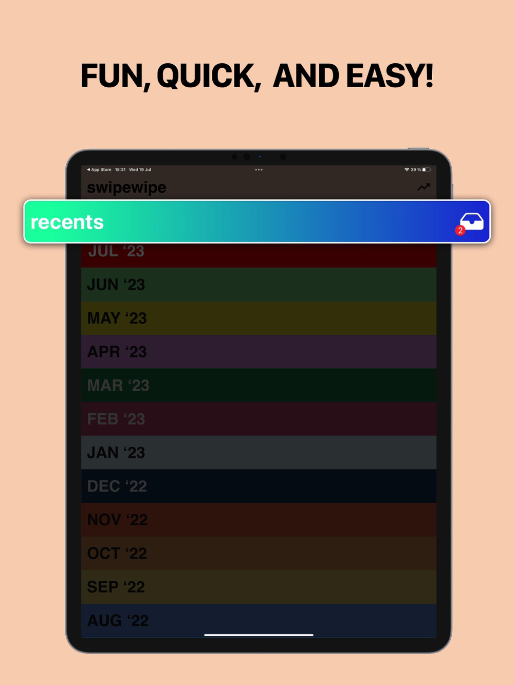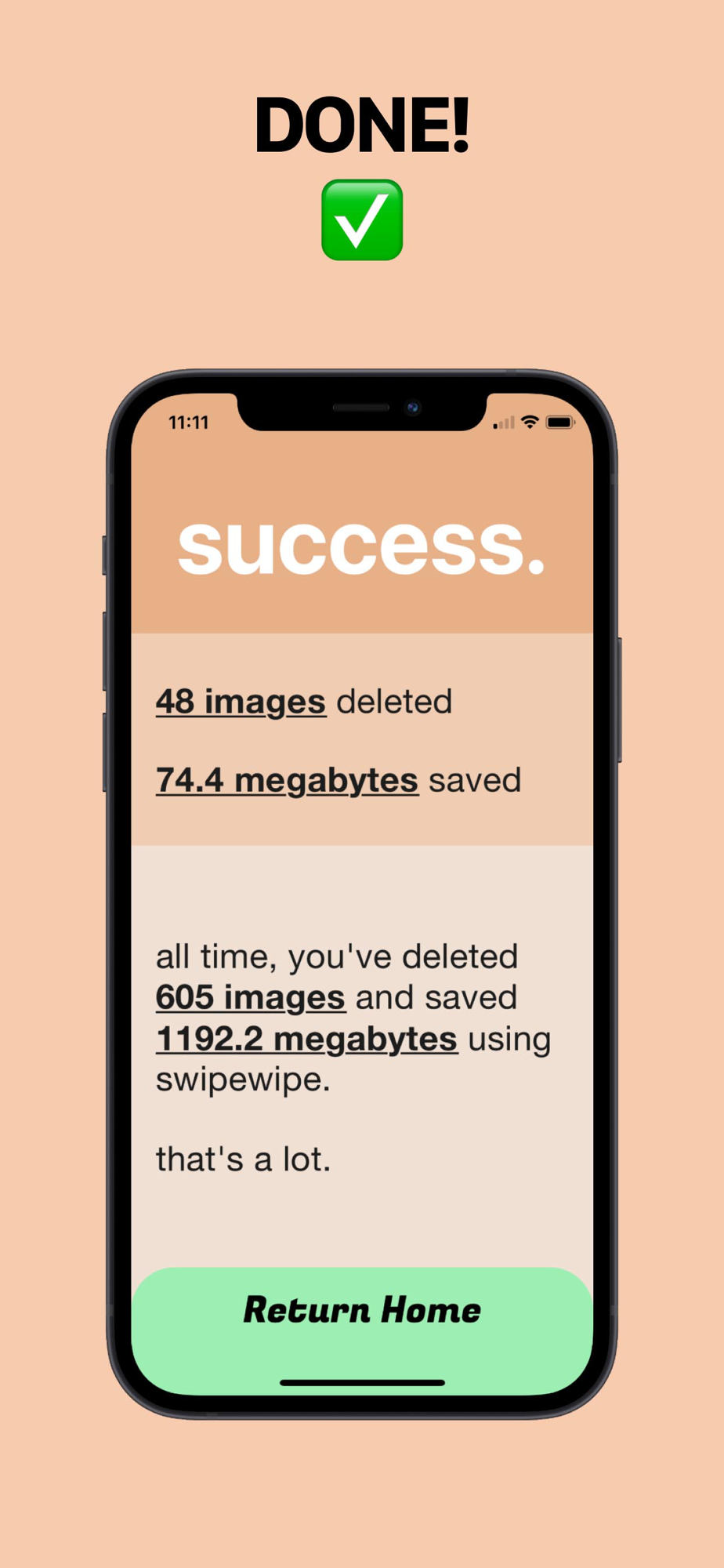 We wanted a simple, fun, elegant solution that let us go month-by-month, work our way through all our photos, videos, screenshots, and everything else in our camera roll, and decide - one by one - what to keep and what to get rid of. That’s Swipewipe.