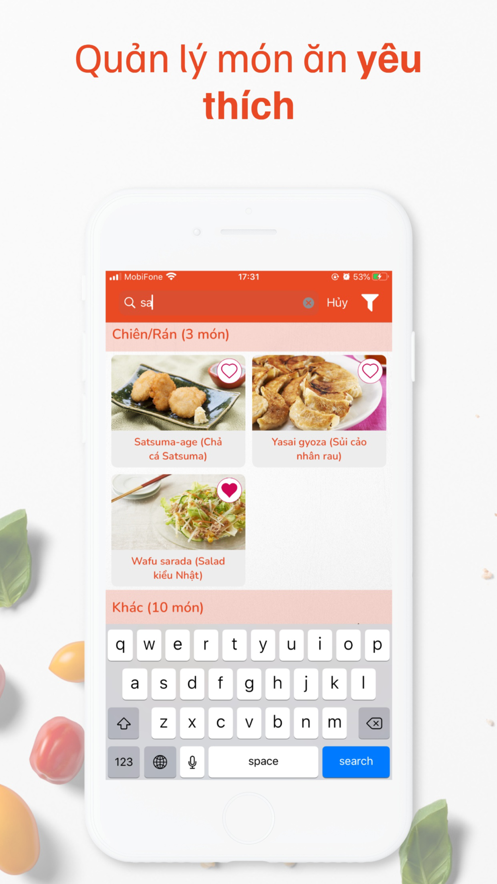 - Lưu trữ các món ăn yêu thích
