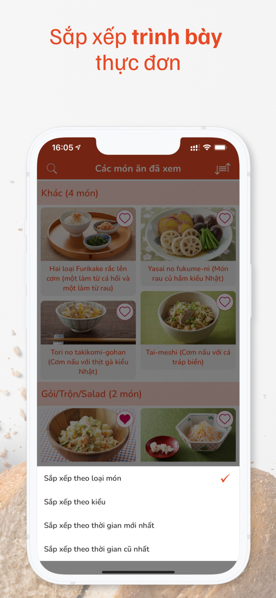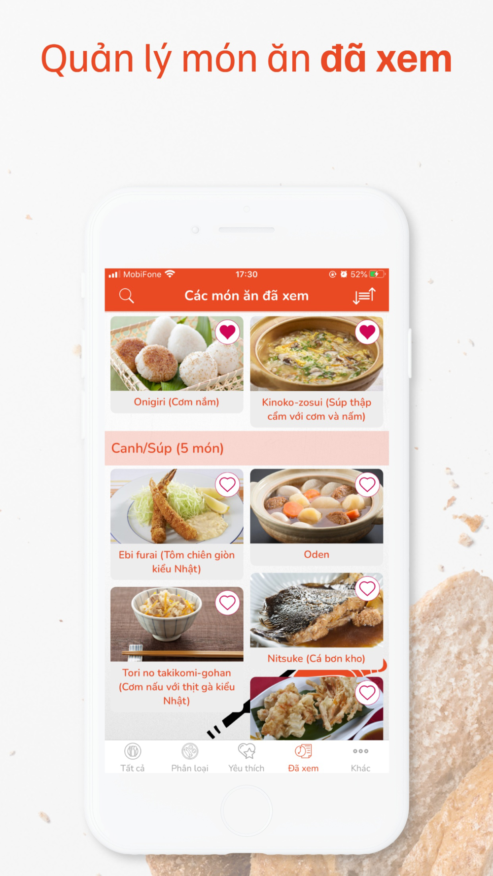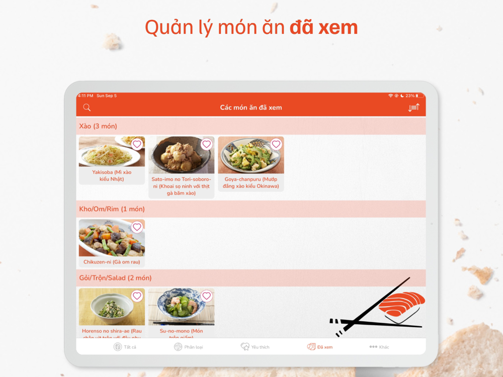 - Lưu trữ các món ăn đã xem qua