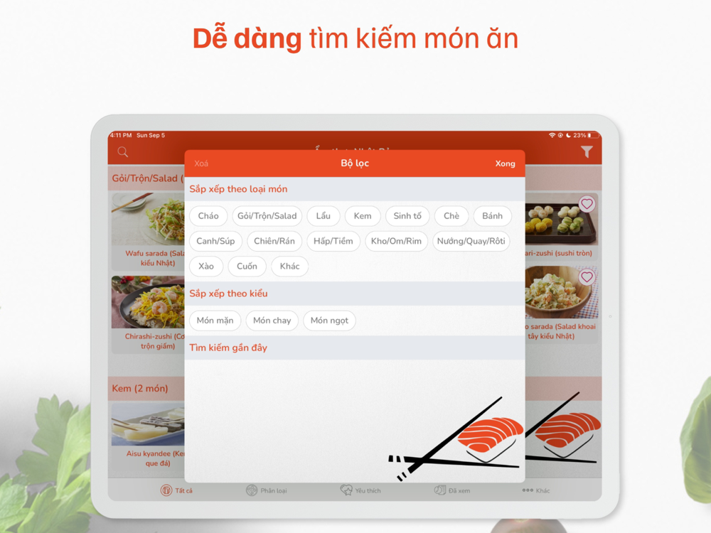 - Tìm kiếm các món ăn dễ dàng với bộ lọc đa dạng
