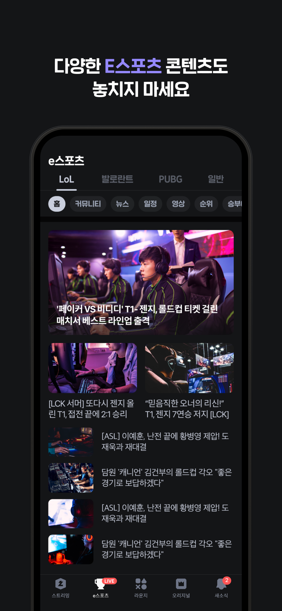라운지와 오리지널, e스포츠 콘텐츠는 그대로 즐기면서,