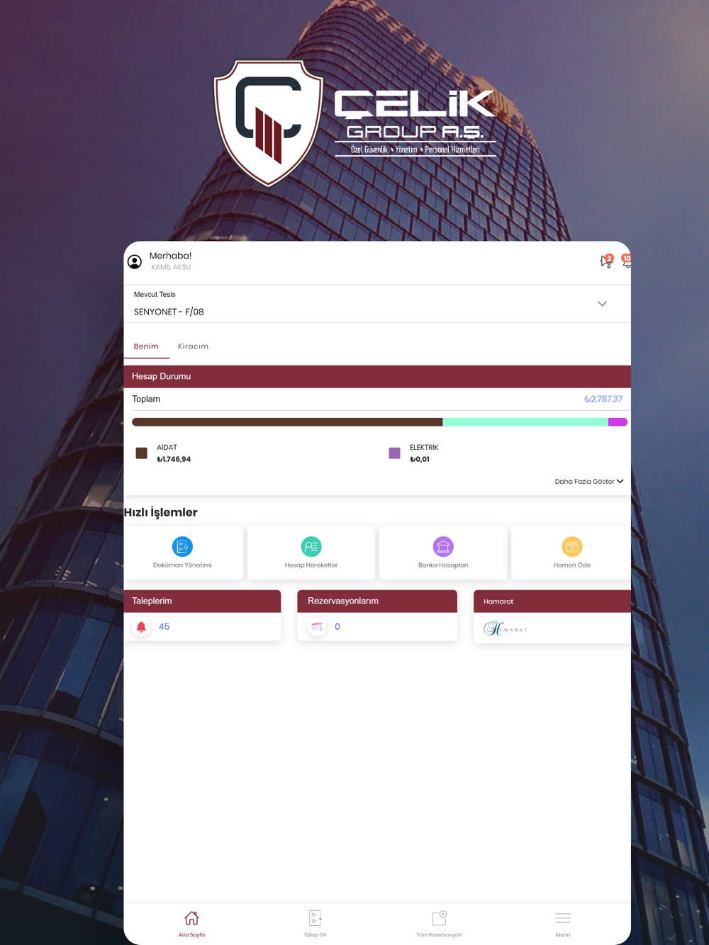 • Mekan Rezervasyonları; Ortak kullanımda olan bir alan için rezervasyon gerçekleştirebilme,