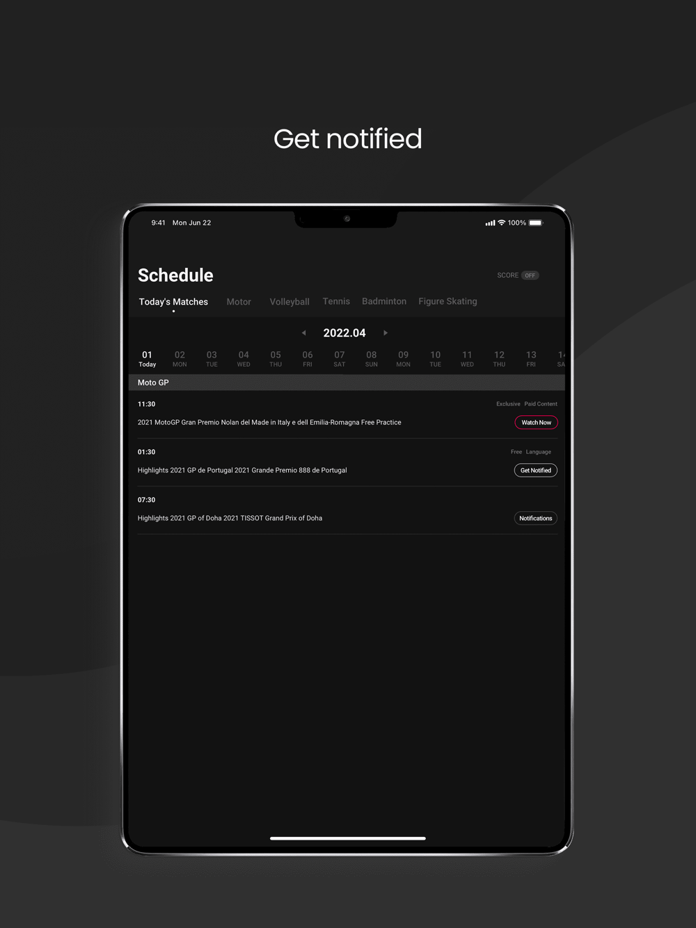 Watch premier Asian and International events such as Wimbledon, MotoGP, WTT, BWF, The Open Championship and much more!