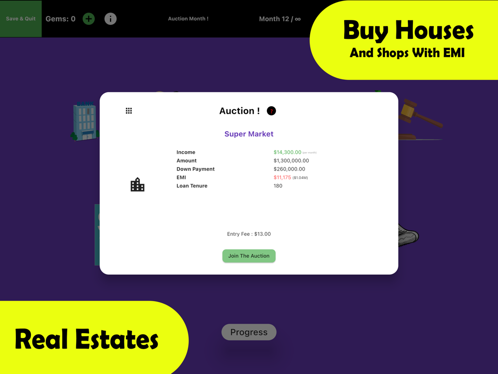 Pay expenses, Collect Incomes, Pay off loans, manage cashflow, Buy Stocks, invest in share market, real estate, mutual funds, fixed deposits and recurring deposits and get to know how to play the money game in real life.