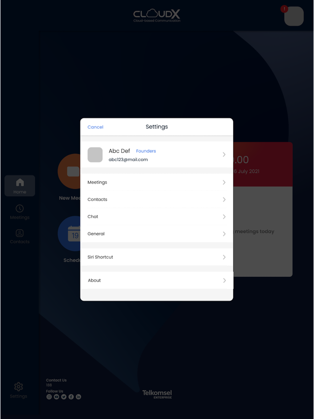 ATTENTION: To use all the features available in the CloudX Meeting application, it is required to have an account that is obtained from the Telkomsel Account Manager