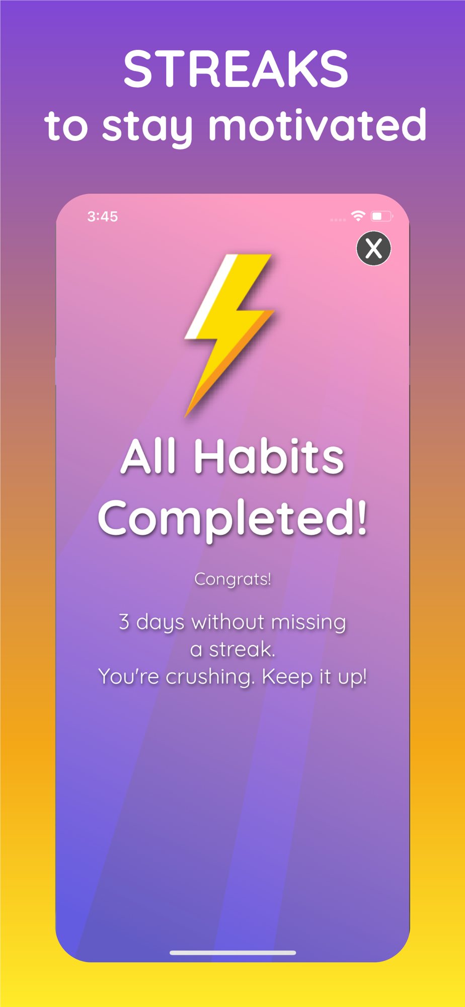 • Daily and individual streaks for motivation. Watch your good habits build over time