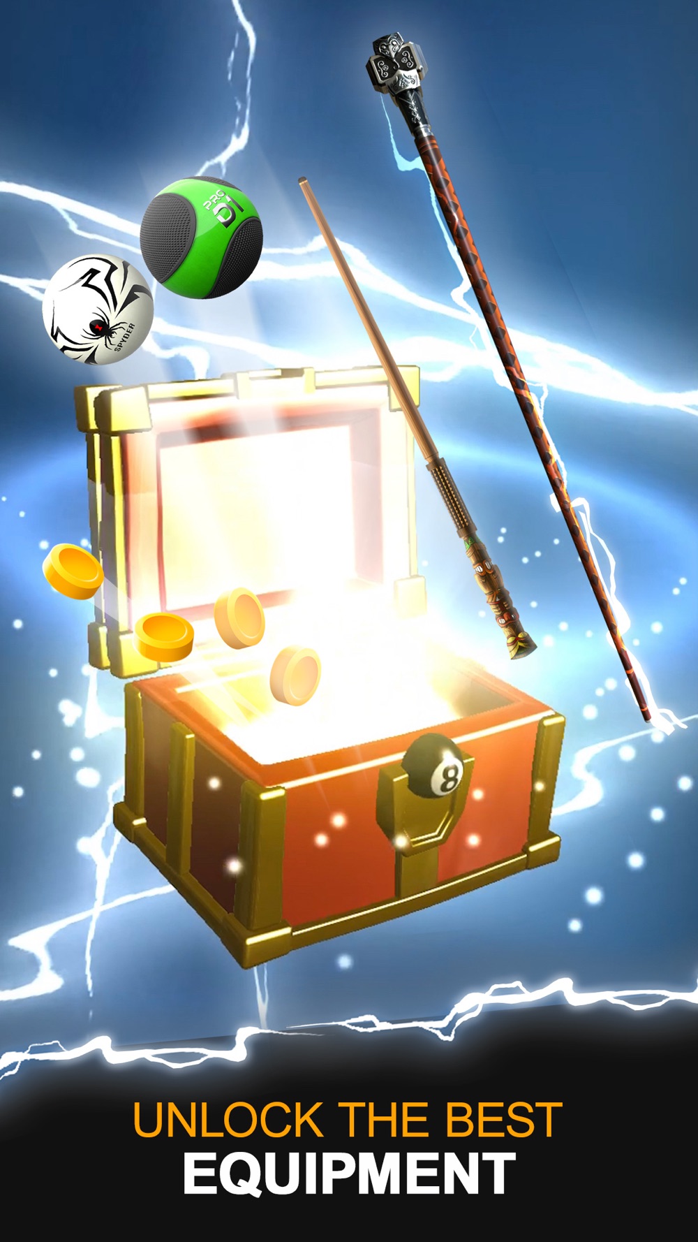 Feel the might of more than 40 unique pool cues, each with their own SPECIAL FEATURES and upgrades to help you unleash extraordinary powers. Play games to complete your arsenal of pool cues and become an 8 ball pool legend.