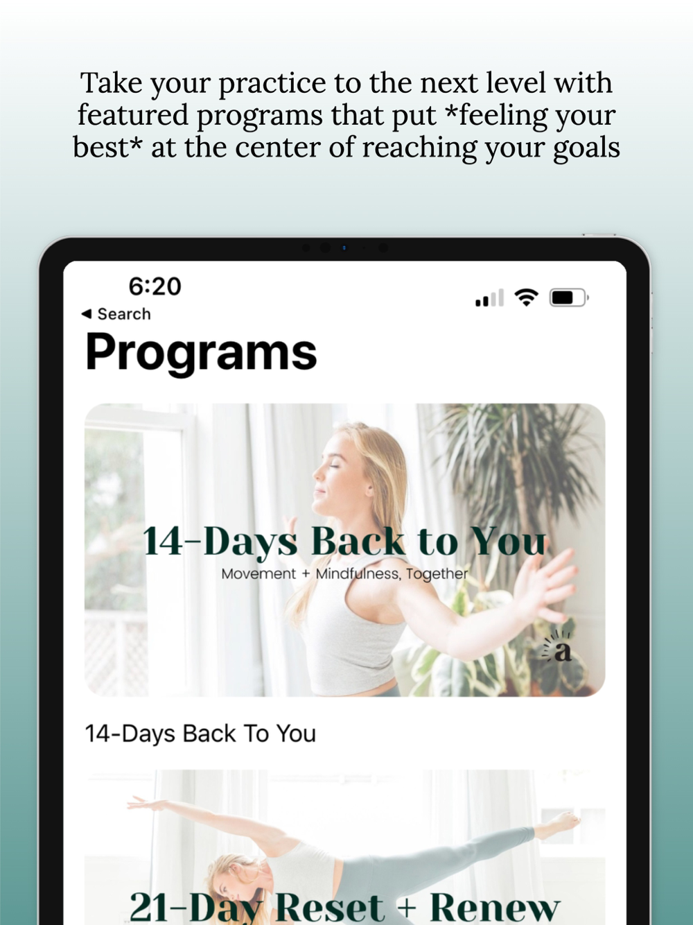 An ever-growing library of classes with over 250 classes to choose from, ranging from 5 minute quickies to a full hour of fitness, yoga, or meditation practices to fit into any part of your day. New classes added weekly!