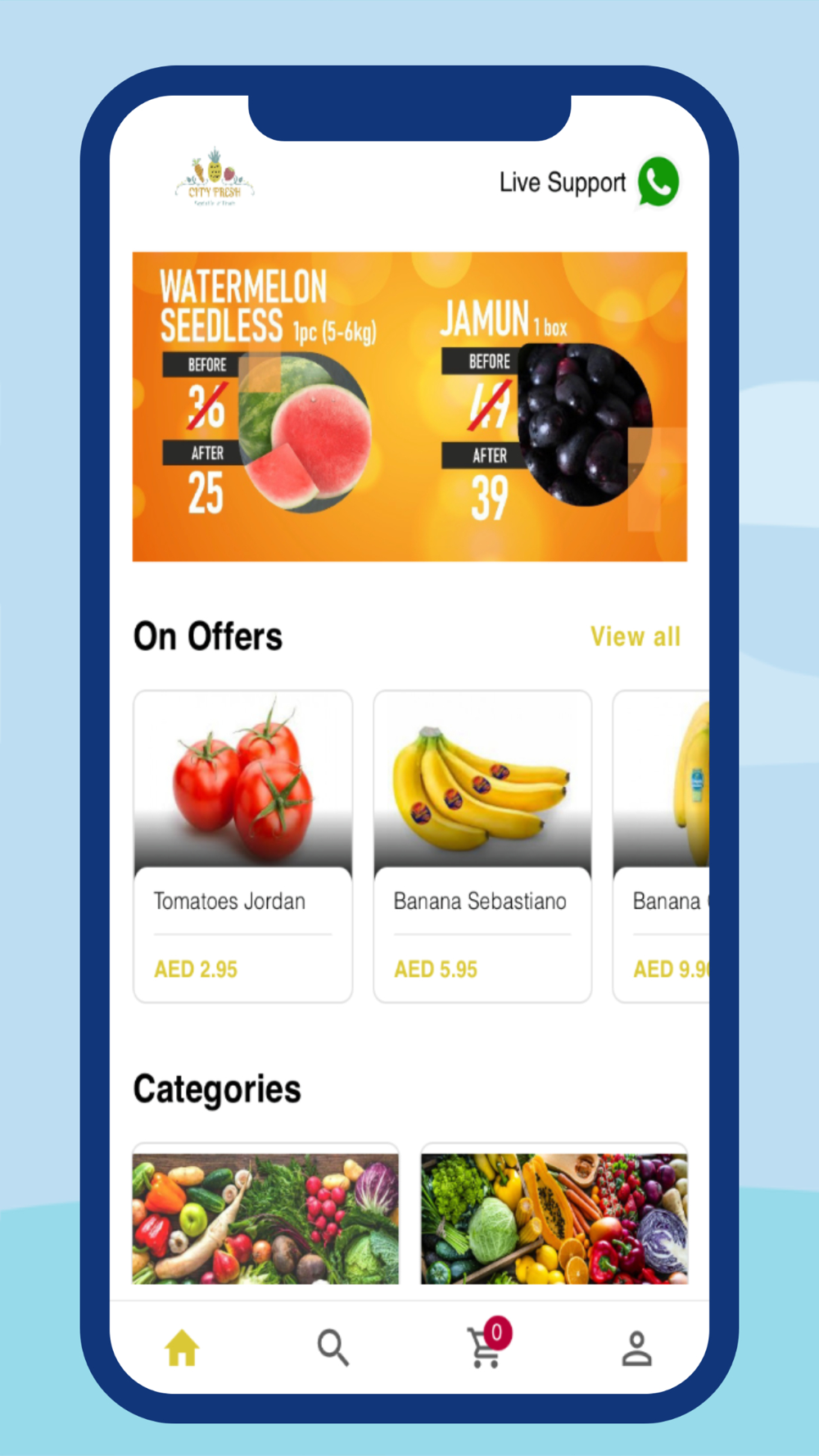 Now you can order fresh fruits and vegetables from your phone and we will deliver to your doorstep.