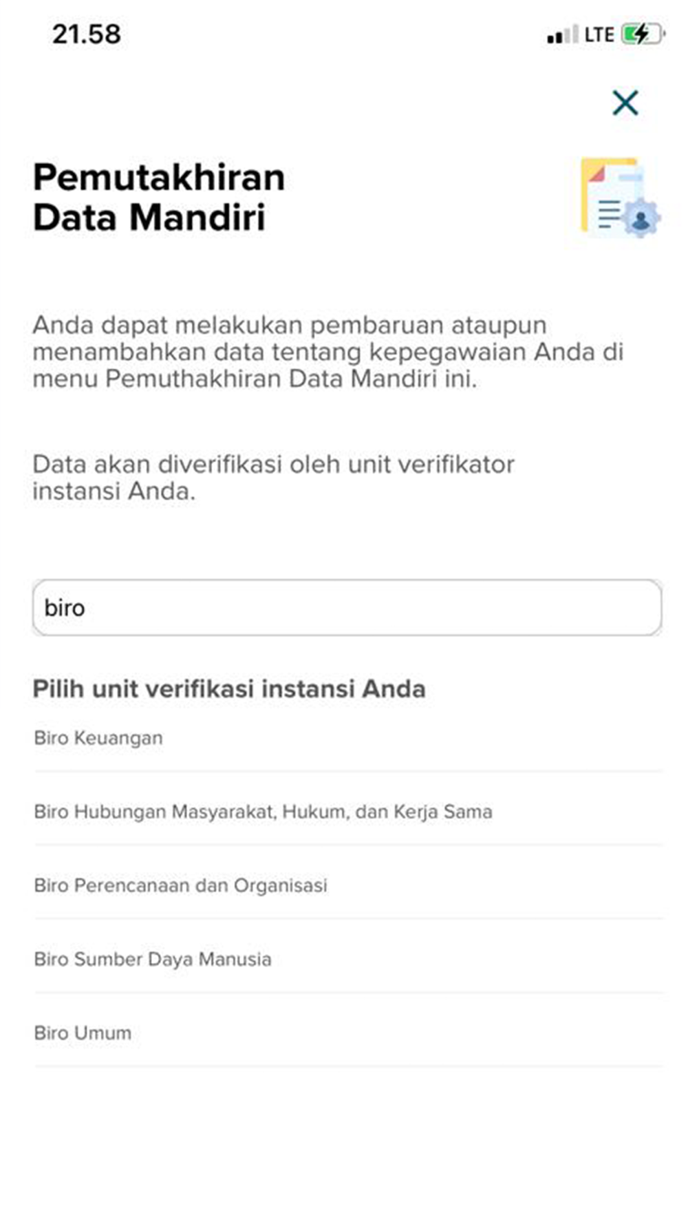 3. Update Data Mandiri melalui aplikasi MySAPK, yang terdiri dari data-data sebagai berikut;