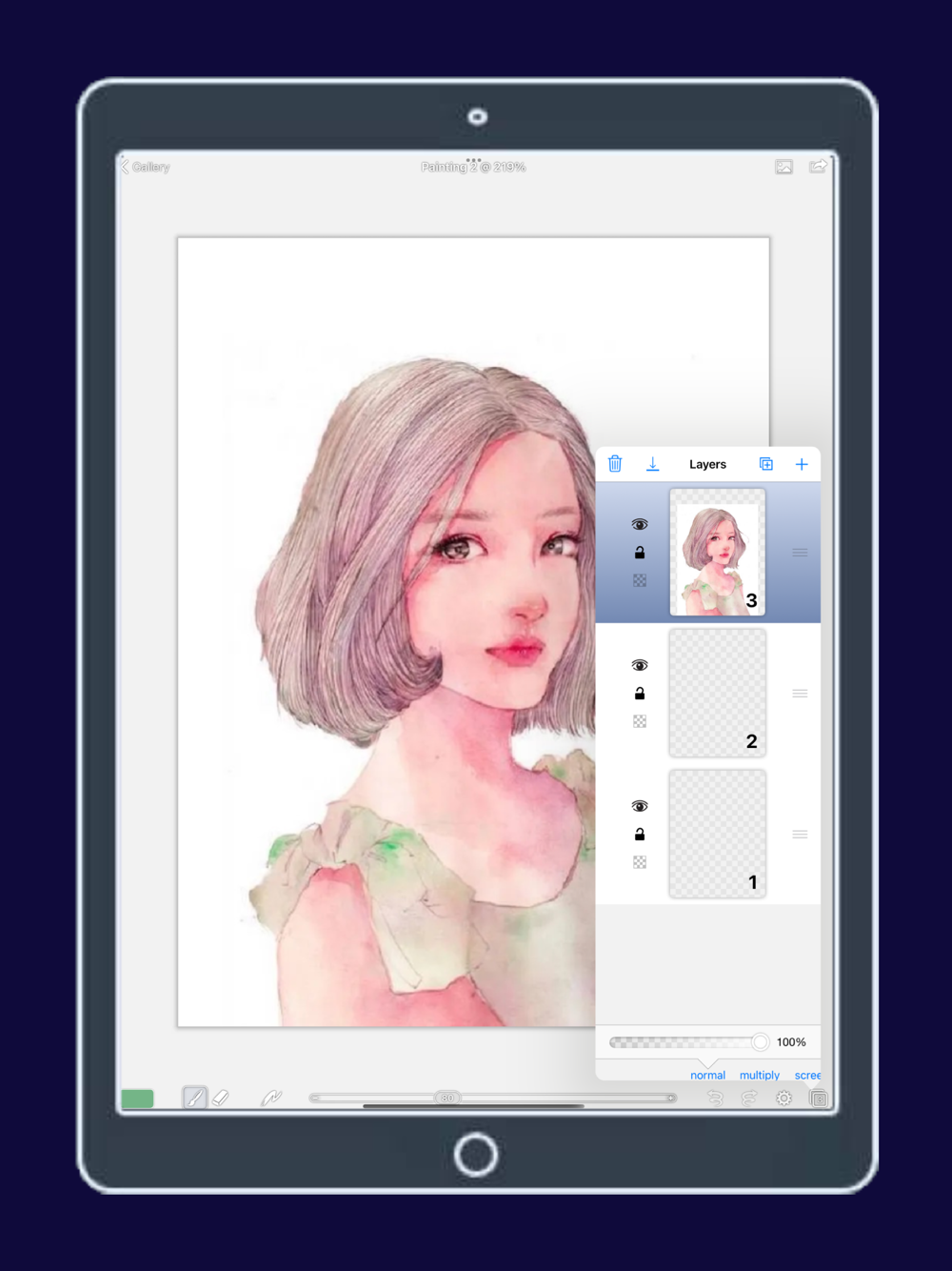 Aquarell is a professional watercolor tool for iOS. It uses OpenGL to render various brushes for watercolor painting to simulate the effect of watercolor painting. We also provide Aquarell with a convenient sharing method iCould to connect devices. We can share our ideas with our iPad for further refinement. We can also export our works to PSD format for us to further improve the quality of painting. We can also export our unique Aquarell format Aquarell for secondary creation.