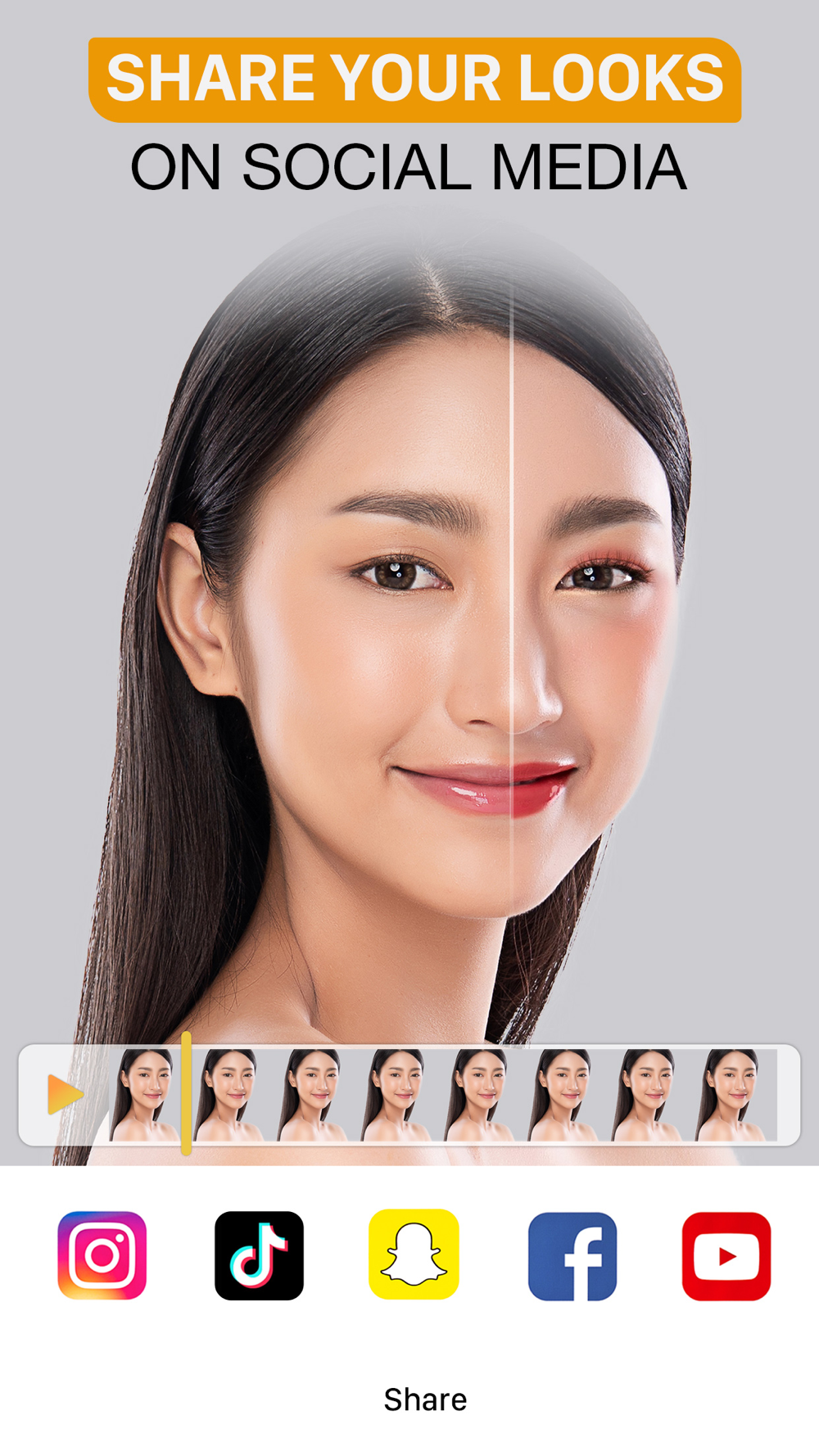 Simply drag the timeline to a specific frame and see your makeup look in every detail. Now you can make sure that your makeup looks flawless from every angle.