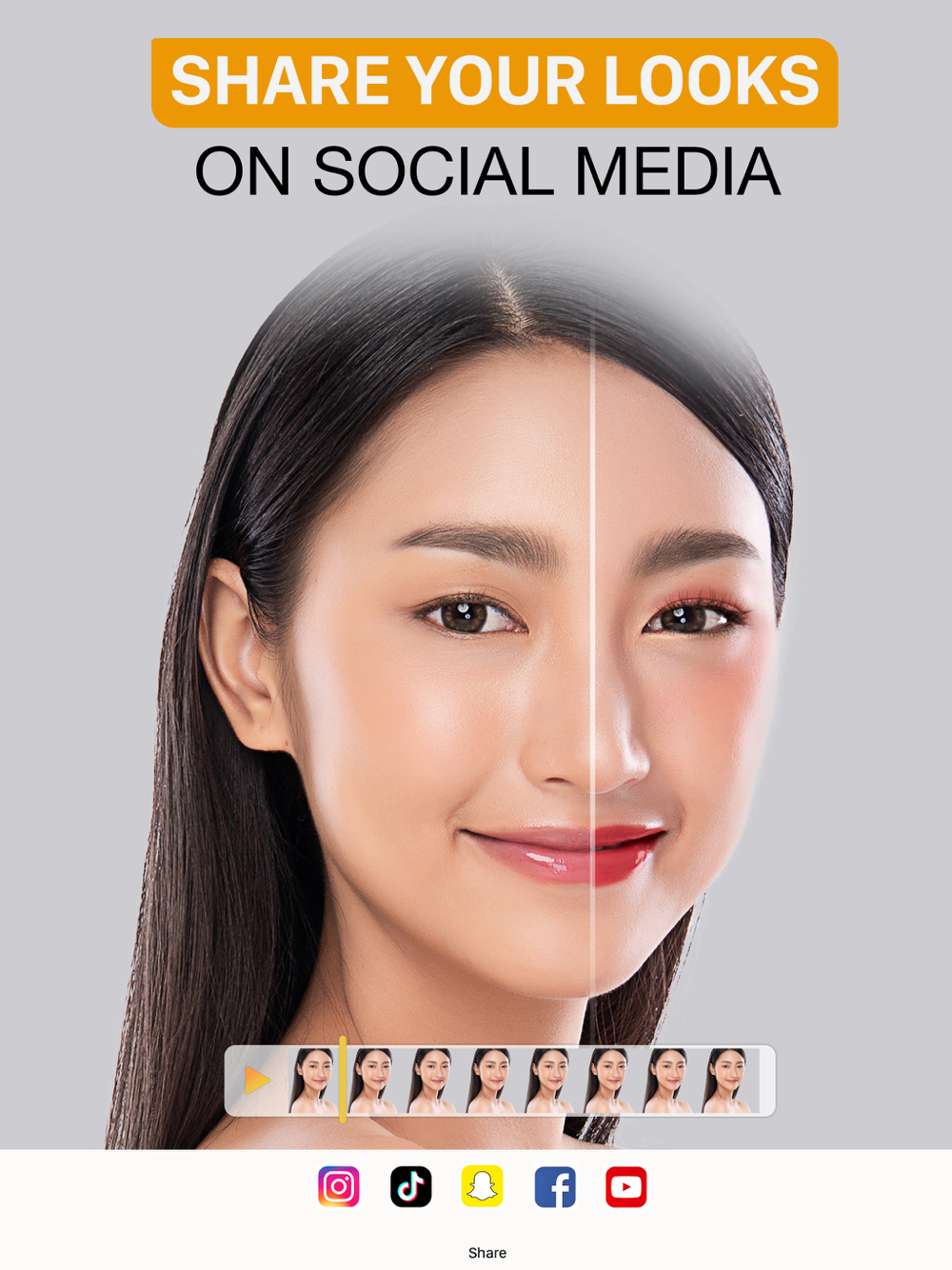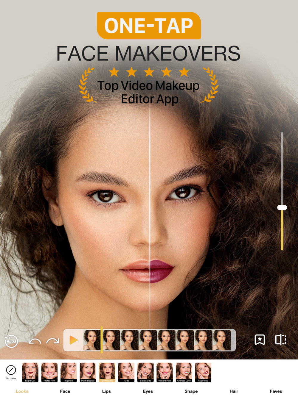 Glam up your video content with Perfect365 Video's before-and-after playback feature, letting you watch your transformation and see just how our virtual makeup tools have elevated your look.