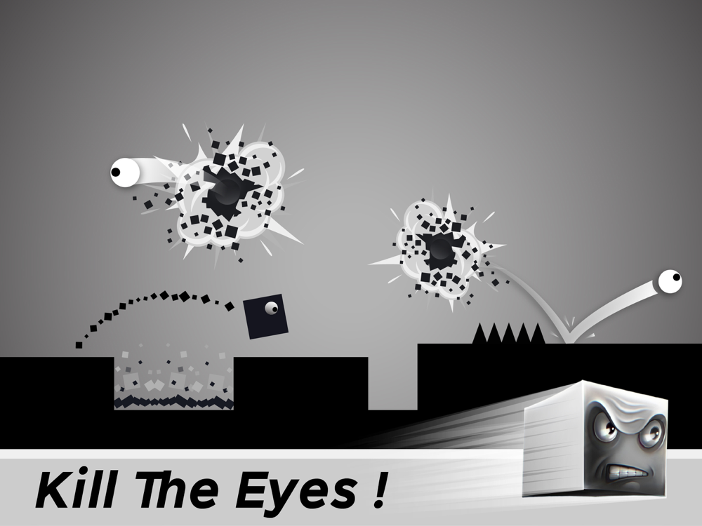 Sqube Darkness is a platformer geometry cube game with dangerous enemies and hard obstacles. Players use their reflexes to jump and run at the correct moments to escape from the attacks of the Eyes.