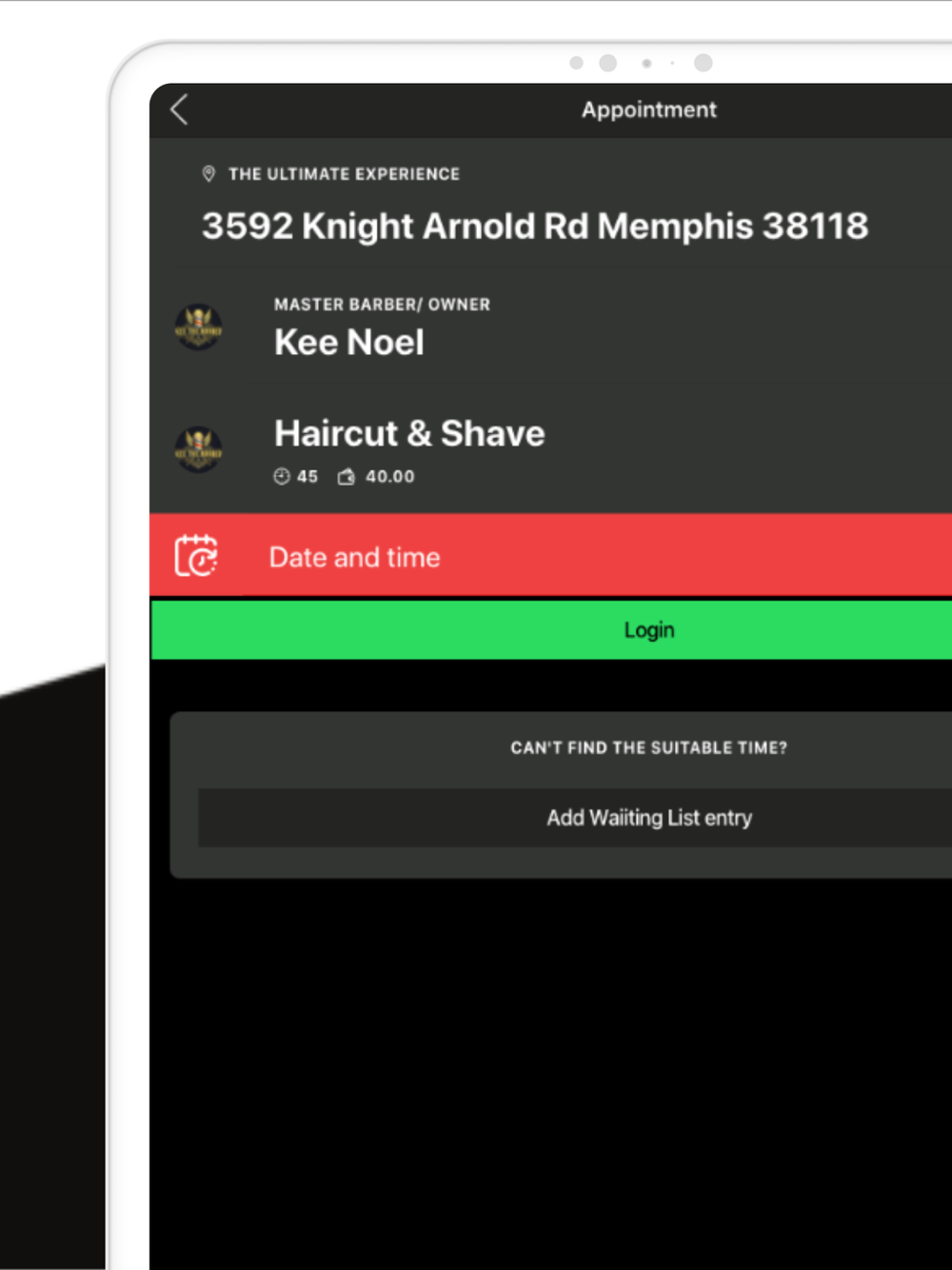This is the booking app of Master Barber Kee The Barber located in Memphis, TN. The app allows book an appointment for a certain service easily at your best convenience. Pay for your visit in a few clicks, check on upcoming appointments, shop your favorite care products online. Stay in touch with your barber, follow social media, look through trending lookbooks, no available time slots - waiting list entries are possible.