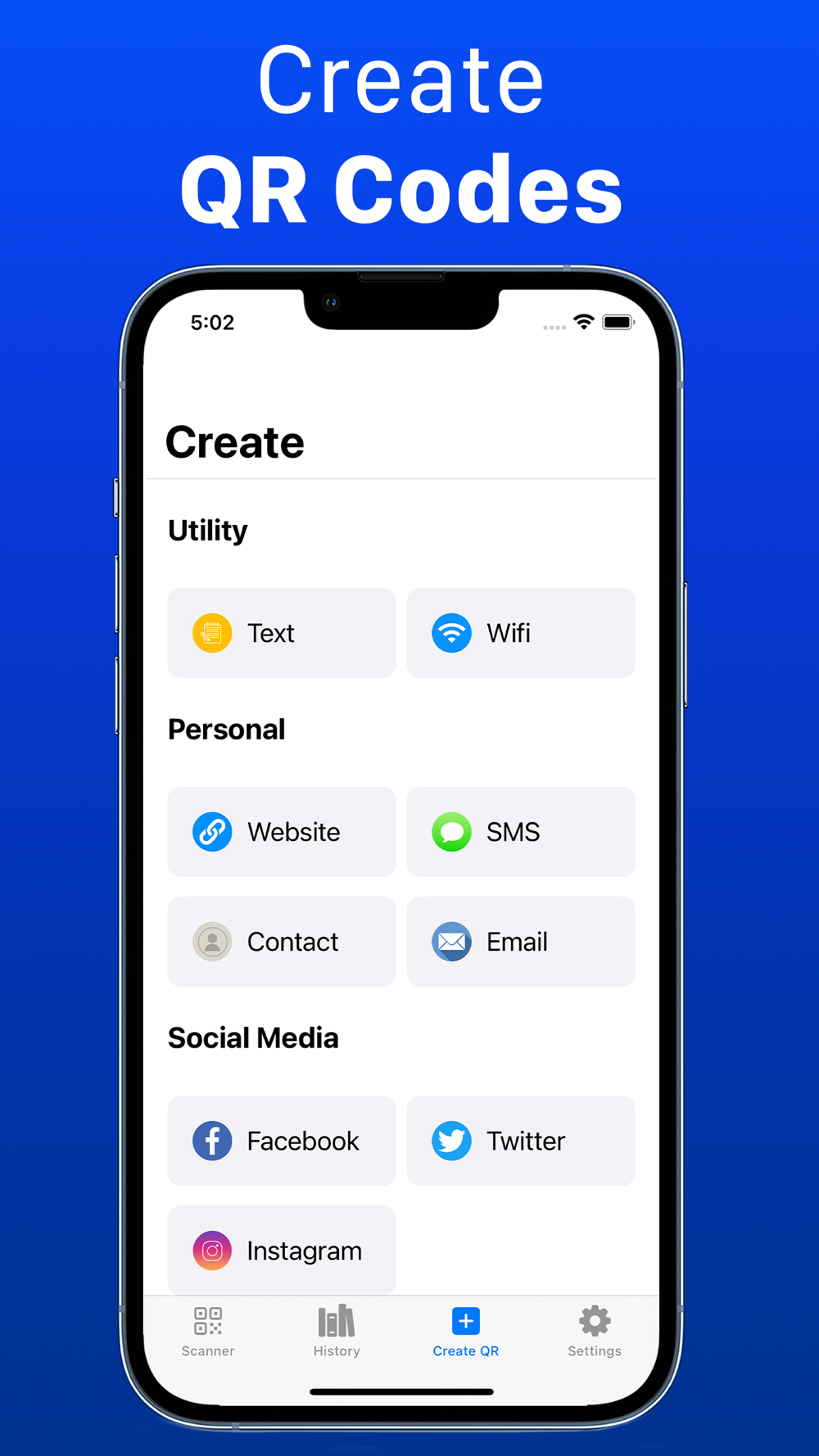 - Support for Contacts, Email, Text, SMS, Wifi, Instagram, Twitter, Facebook, Website Url and others