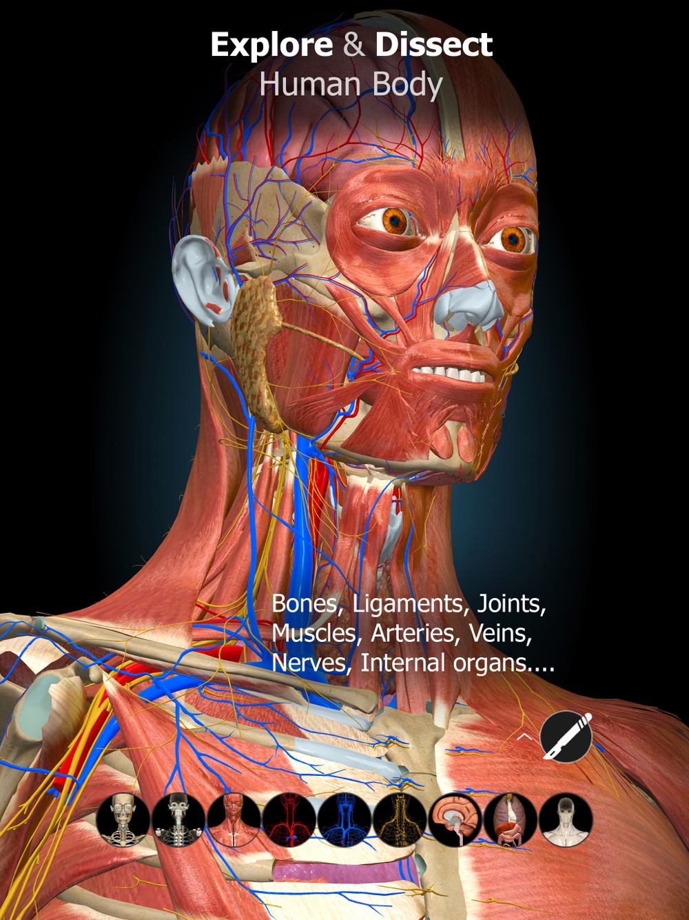 A true and totally 3D app for studying human anatomy, built on an advanced interactive 3D touch interface.