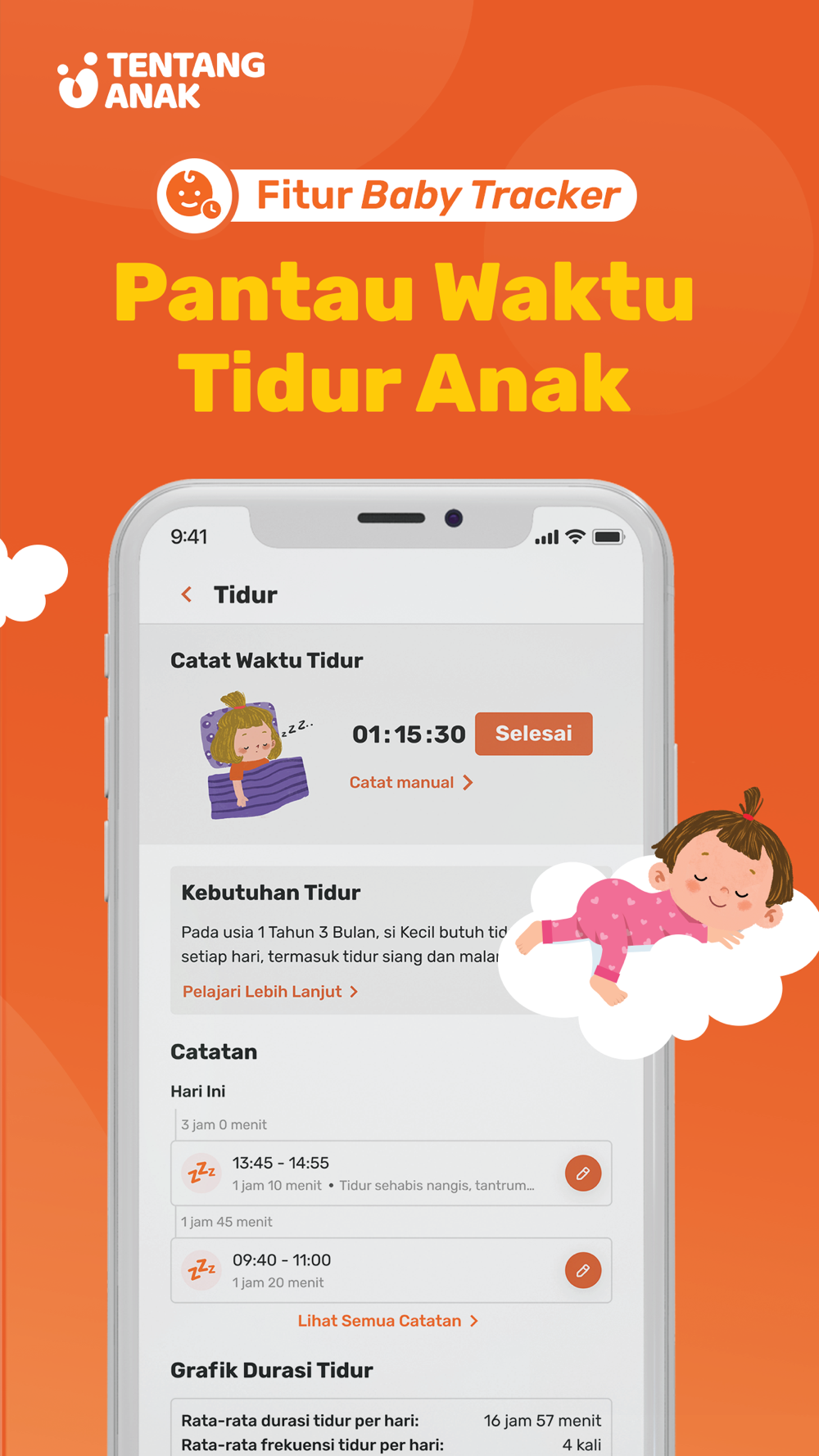 - Pemantau Terlengkap: Hitung durasi waktu tidur, waktu makan dan minum/menyusui, serta pantau waktu buang air kecil & besar anak (SEGERA!). Semua tersedia untuk kecerdasan dan kesehatan anak ayah bunda