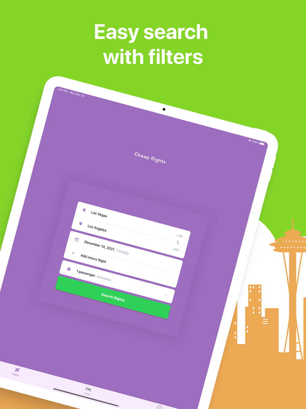 We have convenient filters (baggage, change, and time) to choose a trip to suit your needs.