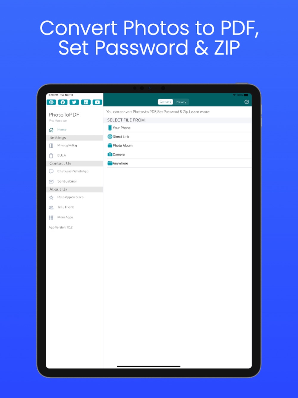 Convert Images to PDF. Aadhi Convert Pic to PDF App is an easy to use tool to convert img to pdf, zip images and to set password to pdf. Select photos from camera roll and press on share button. Then select the icon of Aadhi Pictures to PDF App to convert images to PDF. Also the image converter app allows to convert pics from email attachment, online drive etc.