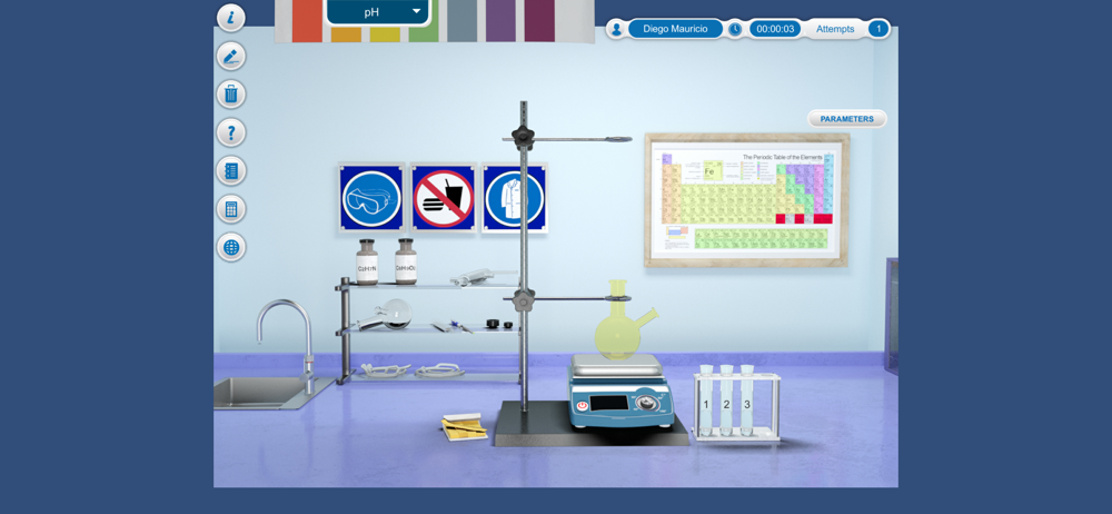 In this simulator you will be able to measure, at different temperatures, the pressure of a gas that is at a constant volume. The objective of this practice is to find the pressure of the gas at a given temperature using Gay-Lussac's law, since laboratory equipment does not allow you to measure this value experimentally. In the laboratory you will find a power source, gas cylinders, a digital thermometer, and a digital manometer, among other necessary elements.