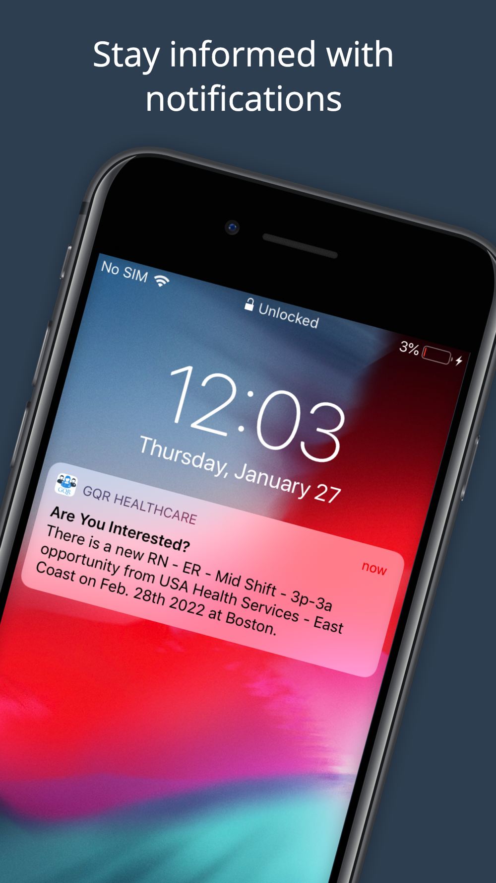 The GQR Healthcare app is an easy-to-use all-encompassing platform allowing Healthcare Providers to find and apply for roles, insert their timesheets, communicate with their recruiter and see their pay.