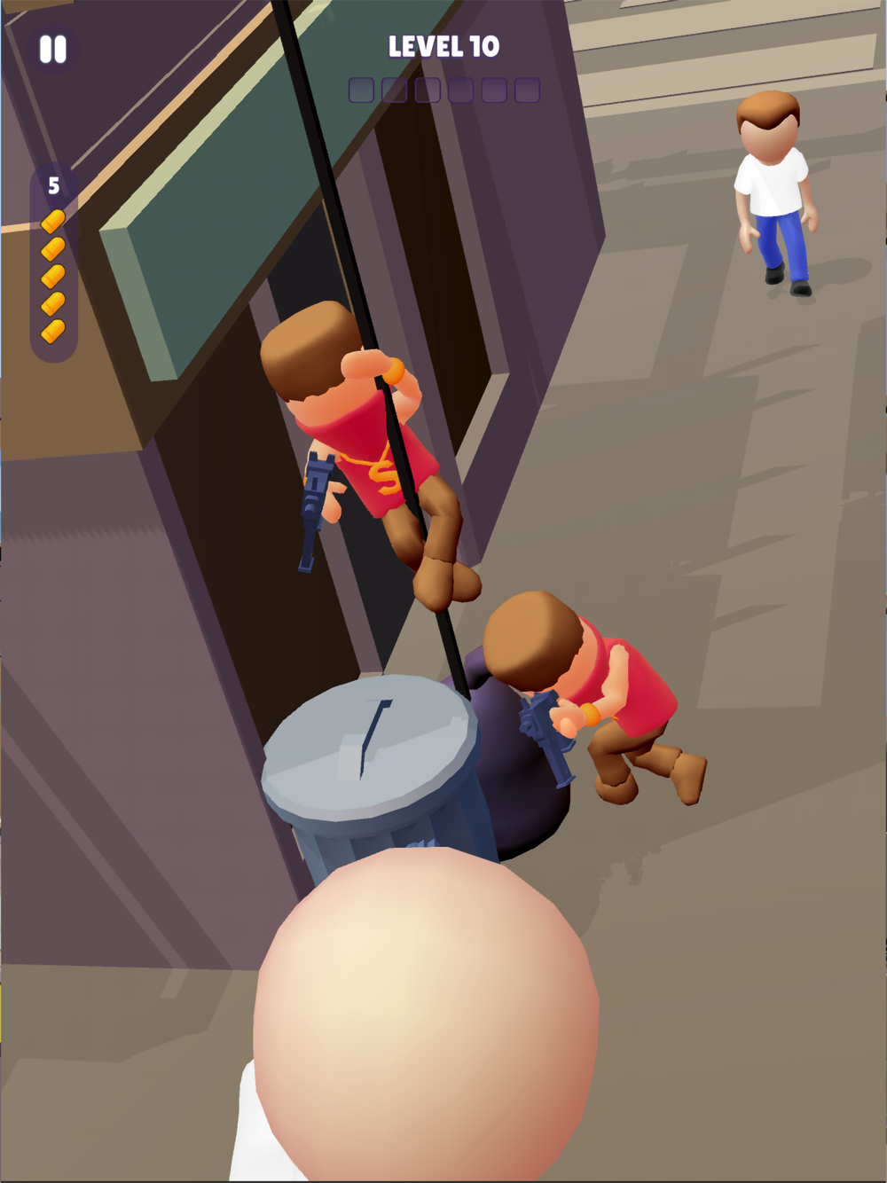 Want to make a nice boom? Then aim to the explosives, extinguishers, and utility pipes - those will knock down a whole bunch of bad guys with a single bang.