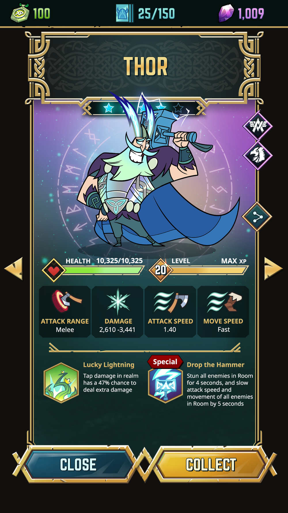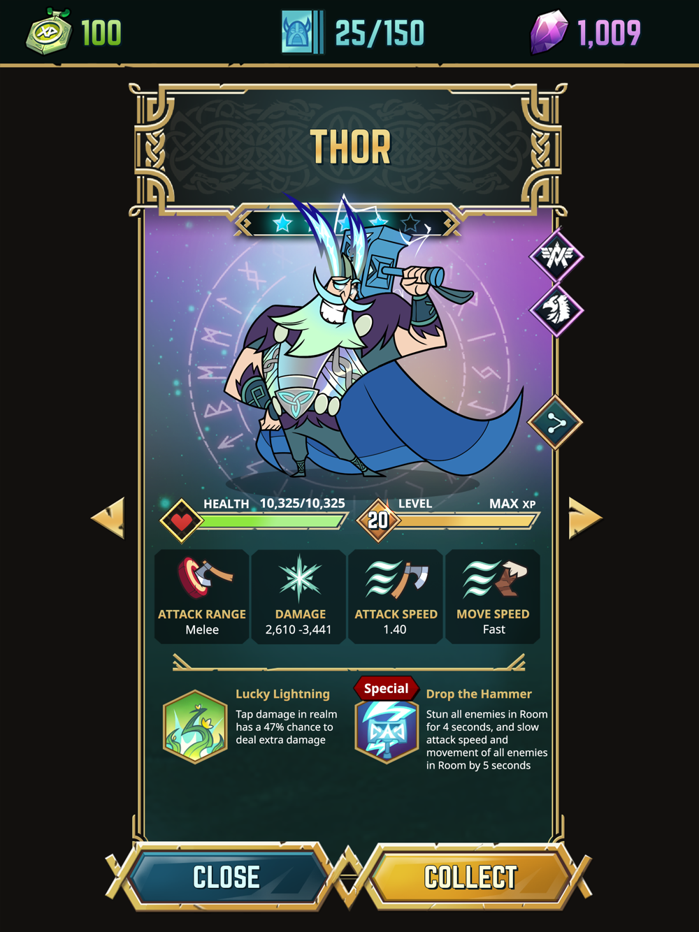 Collect legendary Champions and tap to defend your rooms against invasion by mythical foes. Win XP to level up your Champions, maximize their stats and make them even more powerful. Take down powerful bosses then journey across the Bifrost bridge to expand across the Nine Realms!