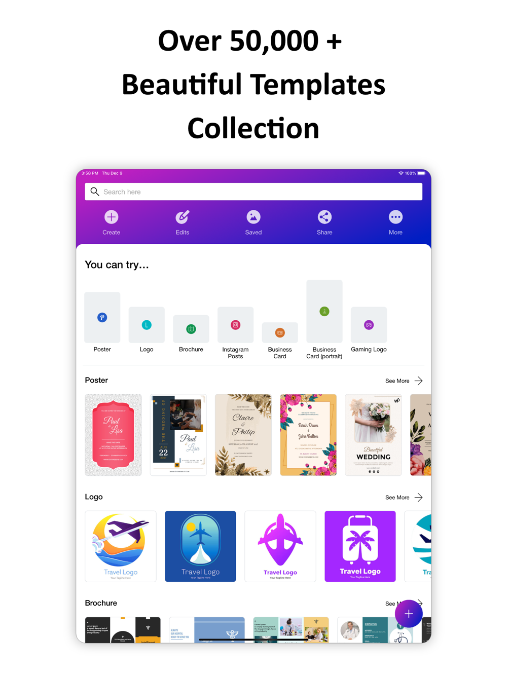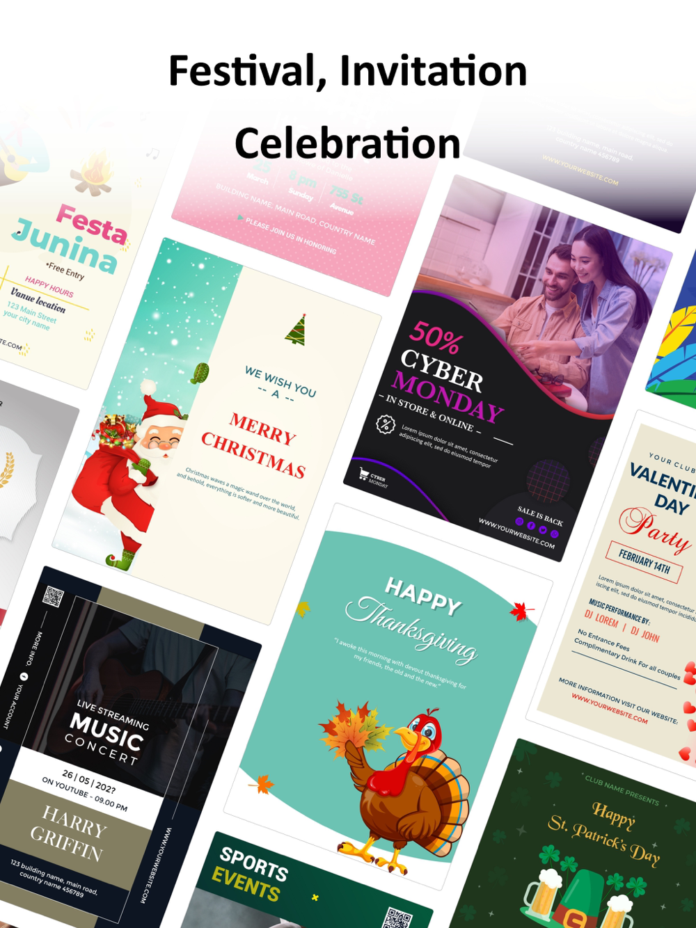 Using Poster Maker you can take advantage of poster templates, logo, brochure, instagram posts, story, invitation card and more.