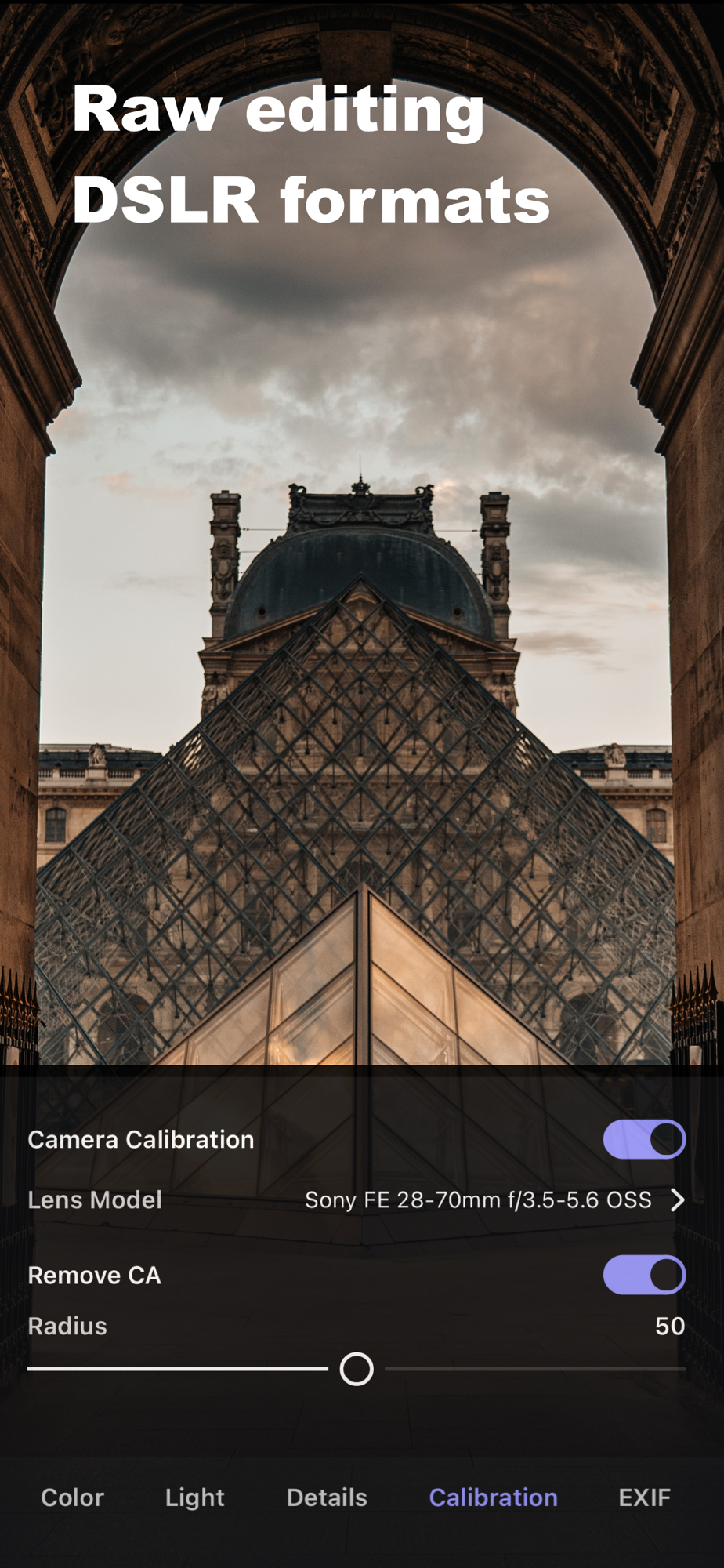 • Open and adjust original camera RAW files, save files losslessly or export as JPG