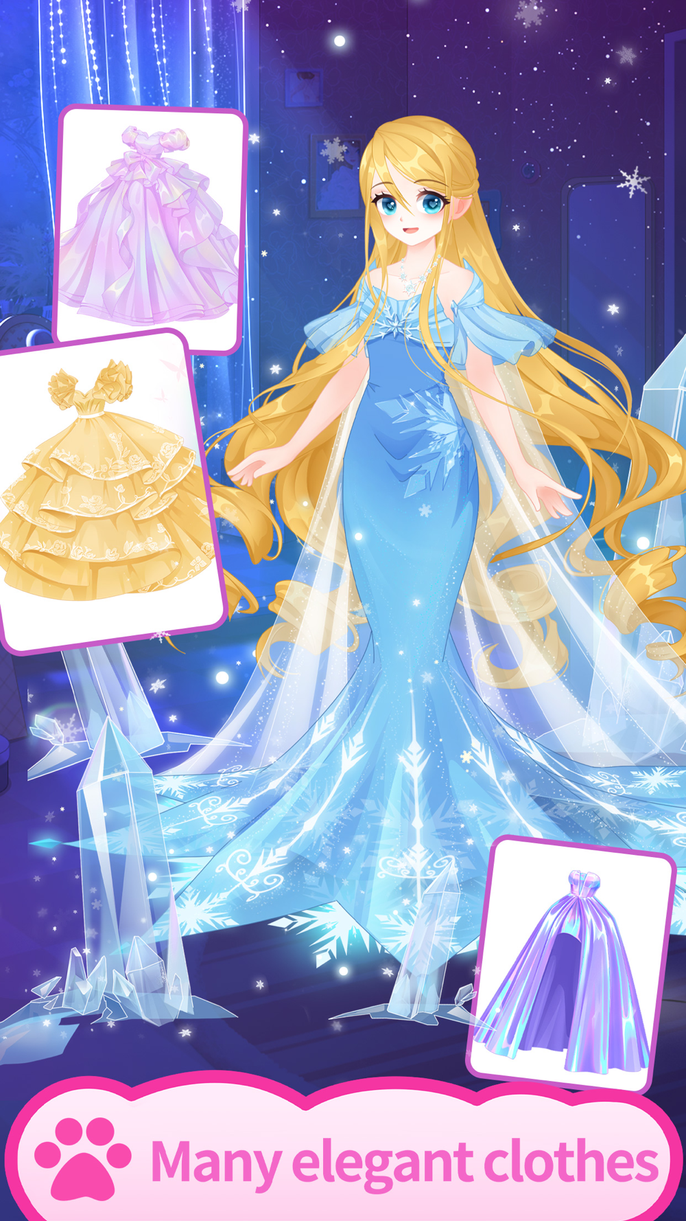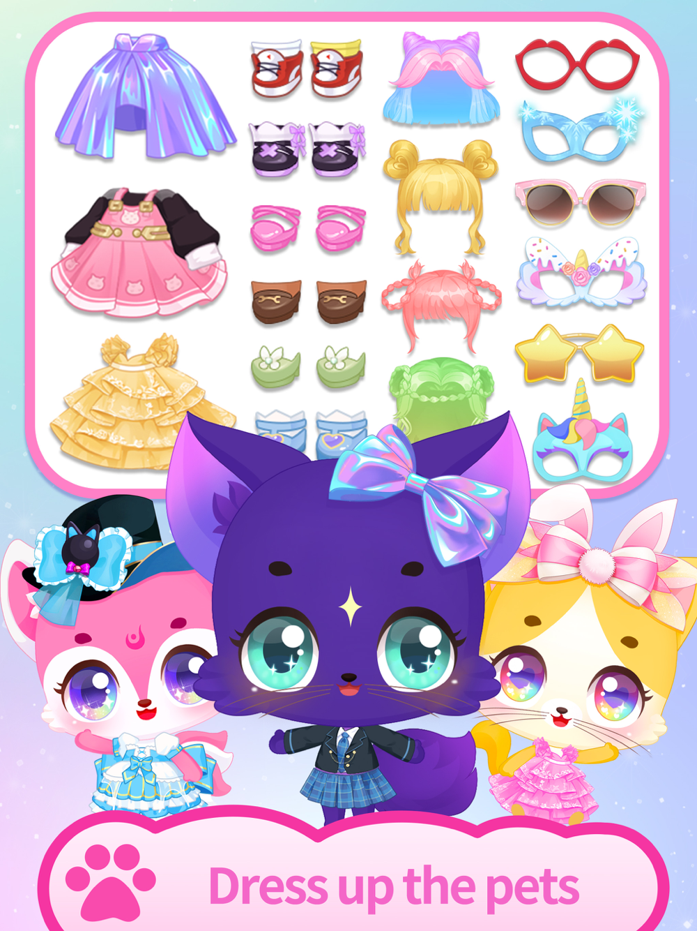 Tons of outfits and accessories are well prepared for a stunning look. Step out of the ordinary and dress up the pets or the princess in a stylish way.