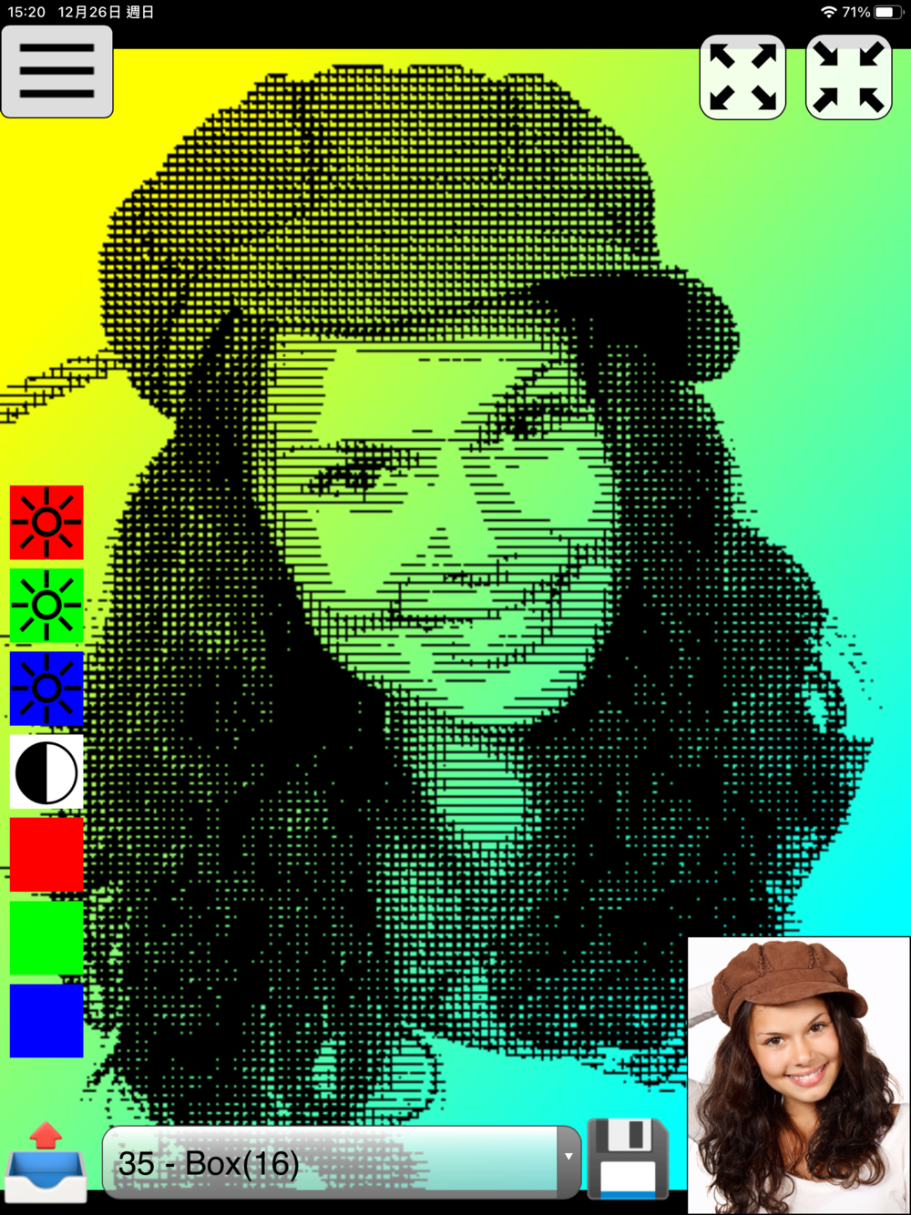 Process photos into black and white dots. There are more than fifty different dot formats, which can be used in laser engraving.
