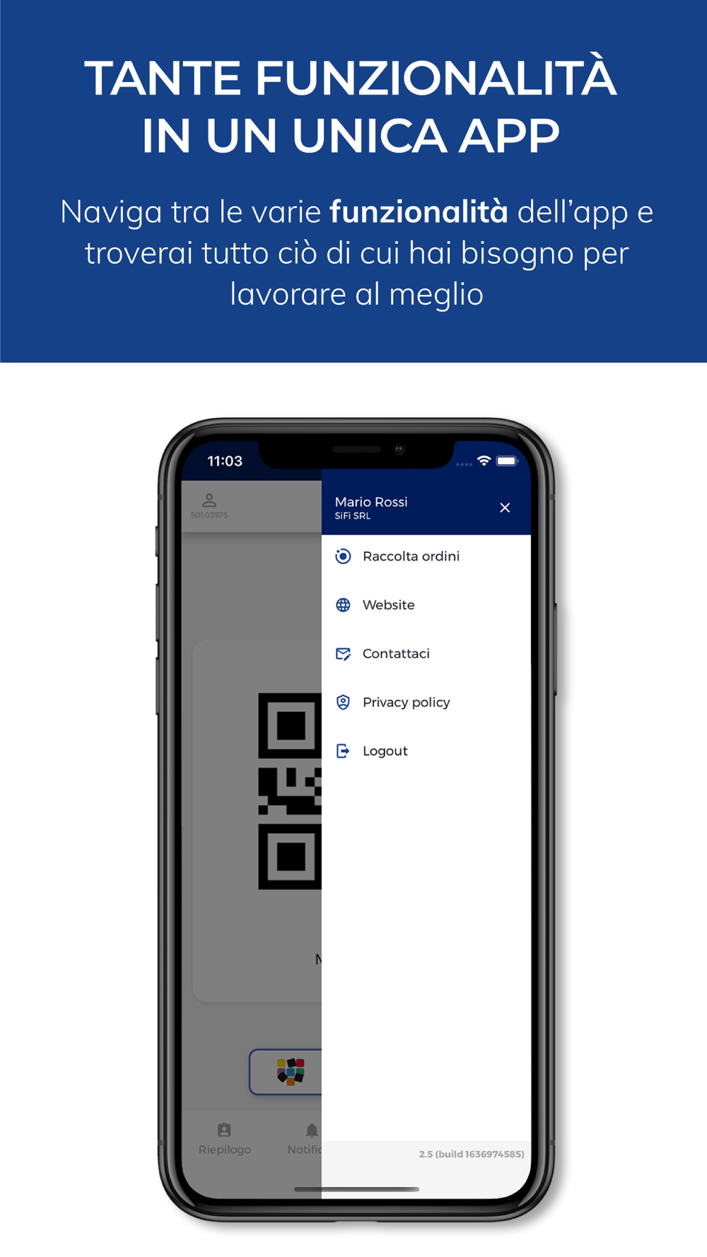 Grazie alle sue funzionalità potrai avere il tuo QR code personale, ricevere notifiche di comunicati e visualizzare lo stato dei tuoi ordini.