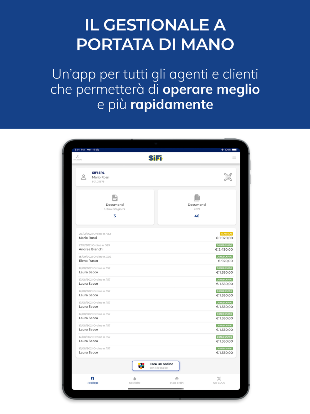 Sifi è l’app pensata per gli agenti e i clienti di Sifi che ti da tutto quello di cui hai bisogno per creare, gestire gli ordini e risparmiare tempo.