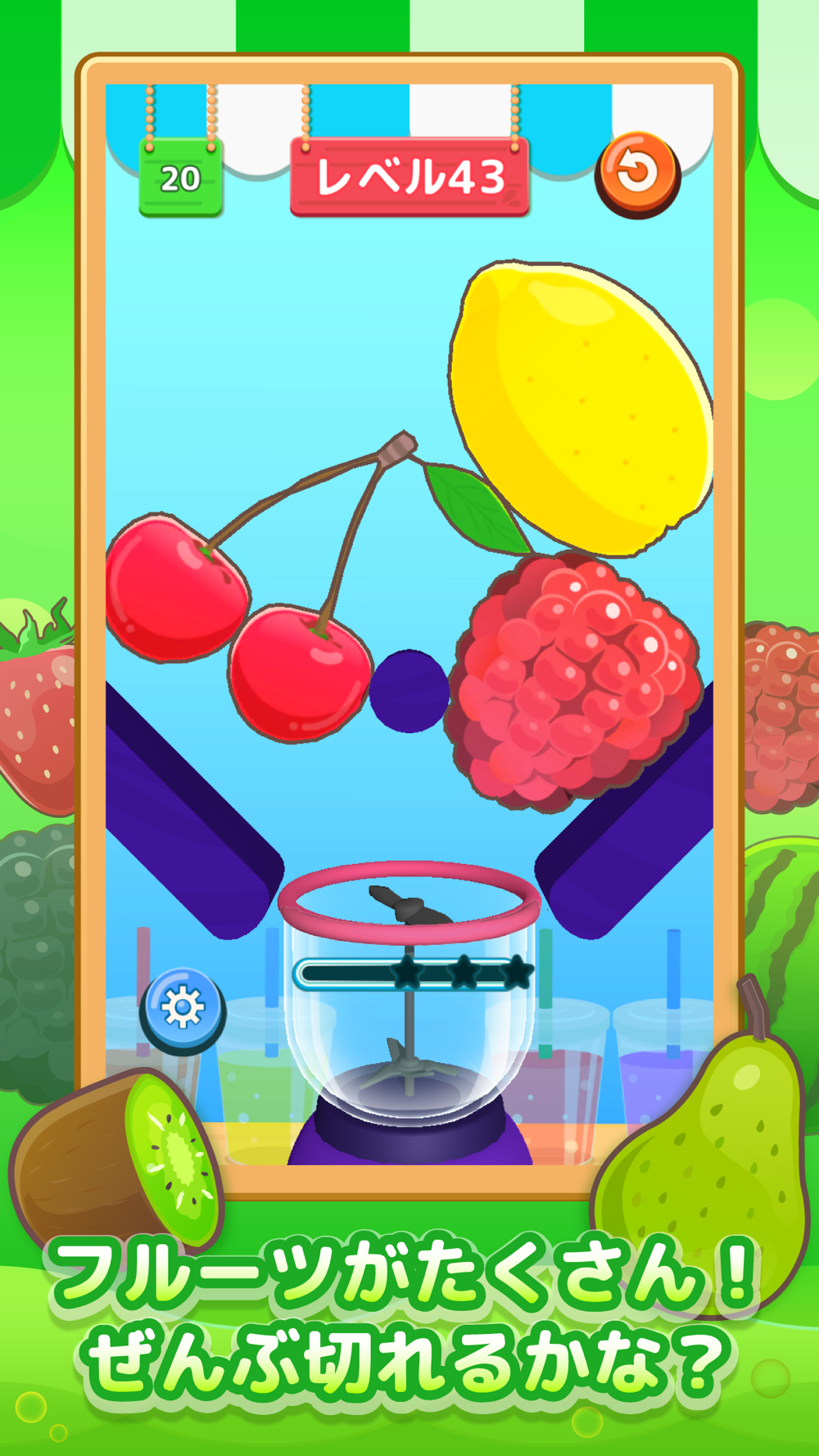 画面をスワイプしてナイフを振ればフルーツがカットできるよ。