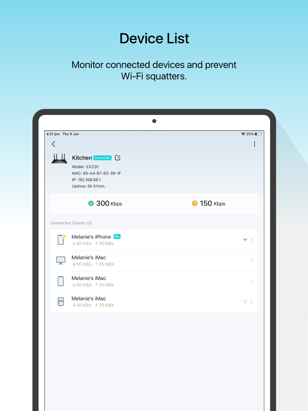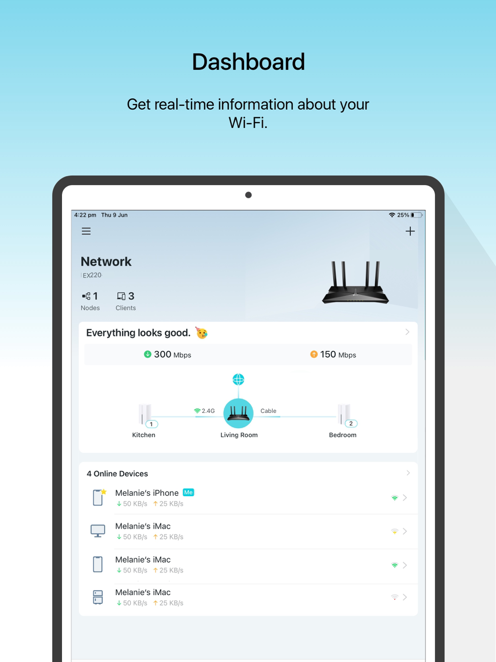 With a TP-Link Aginet gateway or mesh WiFi, enjoy strong, secure connections at home with robust app features: