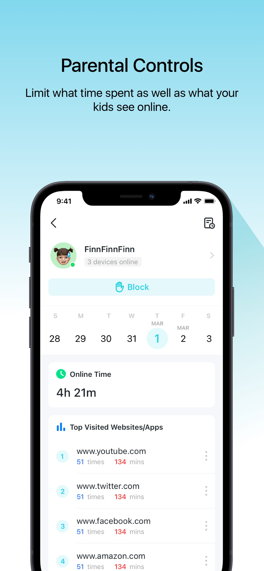 • Parental Controls: Schedule or pause internet access to promote healthy internet habits.