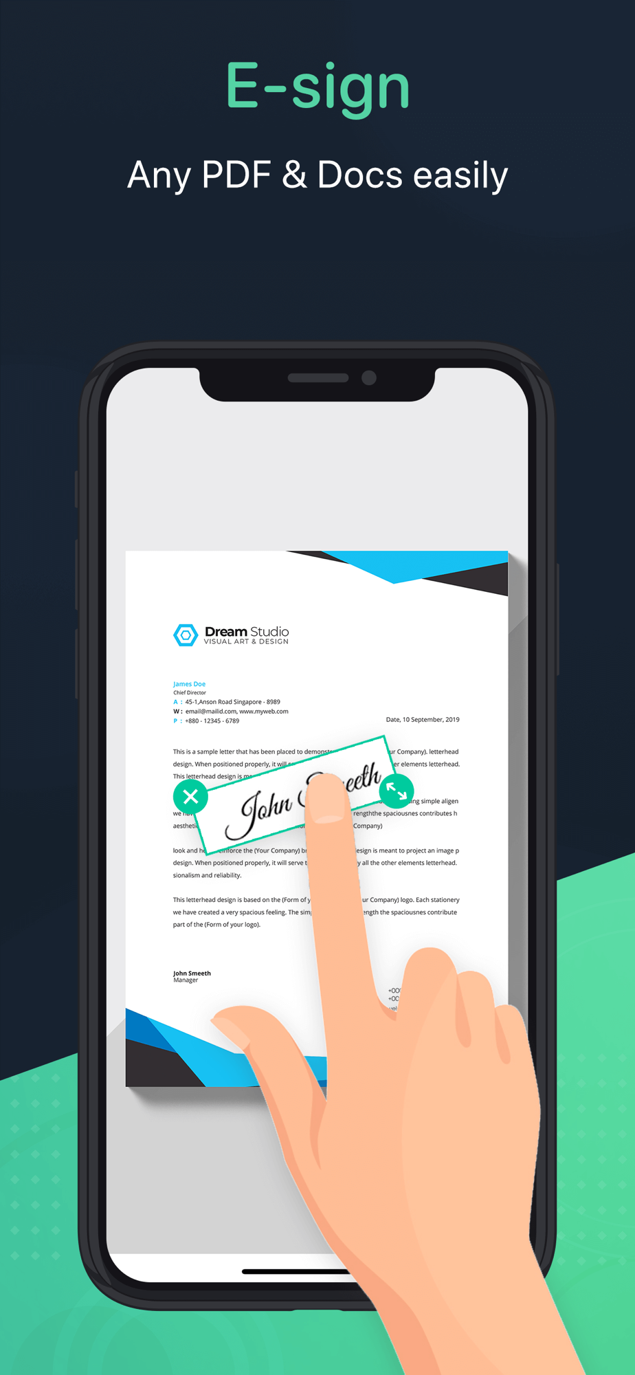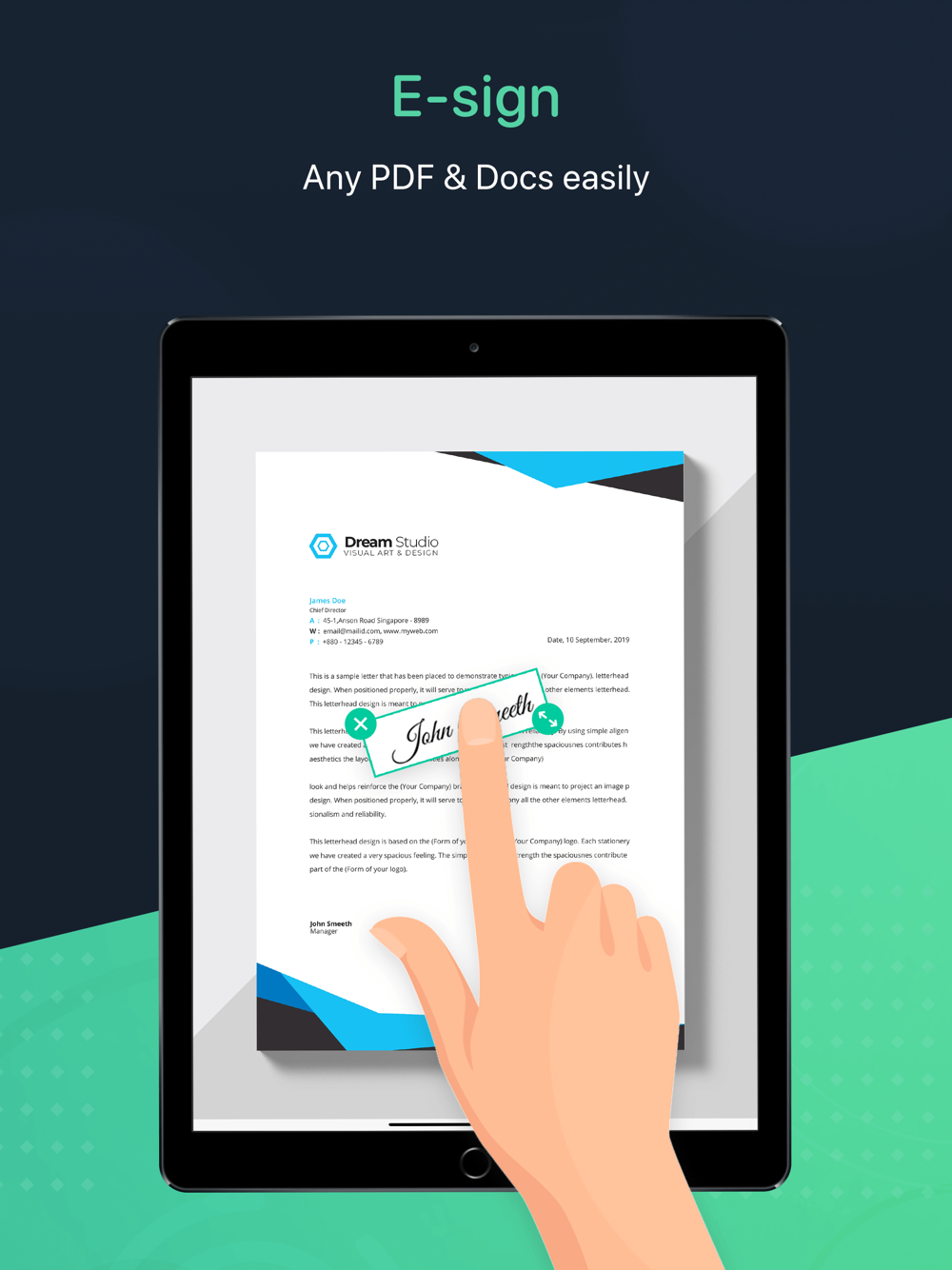 Using the Cam Scan's E-Signature feature, you can sign scanned documents with your digital signature.