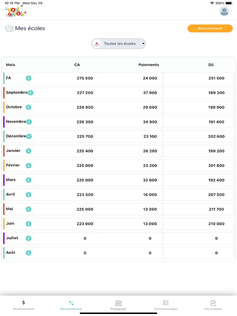 Application de pilotage et de suivi des indicateurs de performance de l'école: Finance, pédagogie et vie scolaire.
