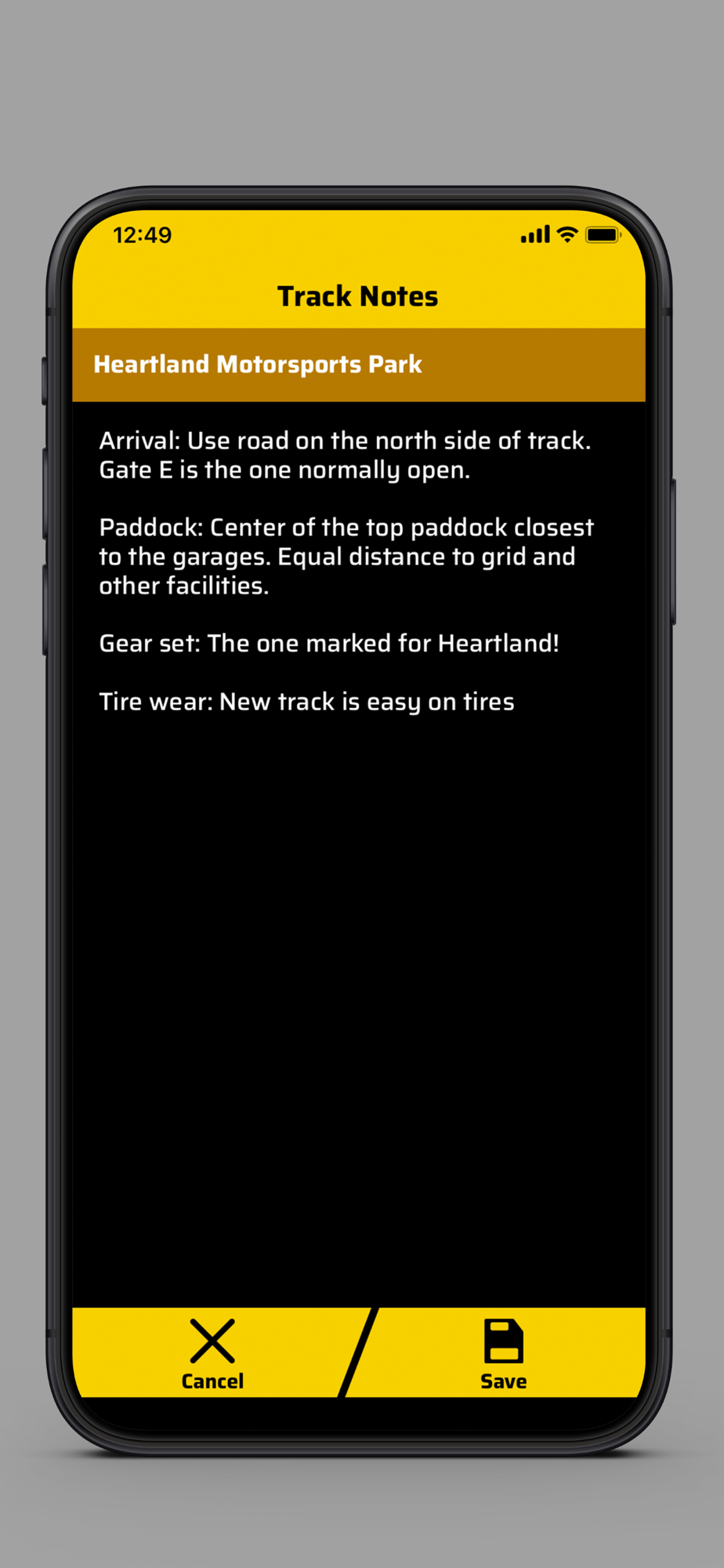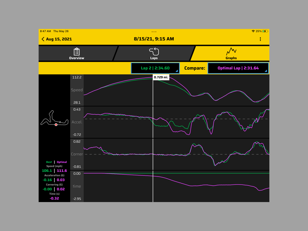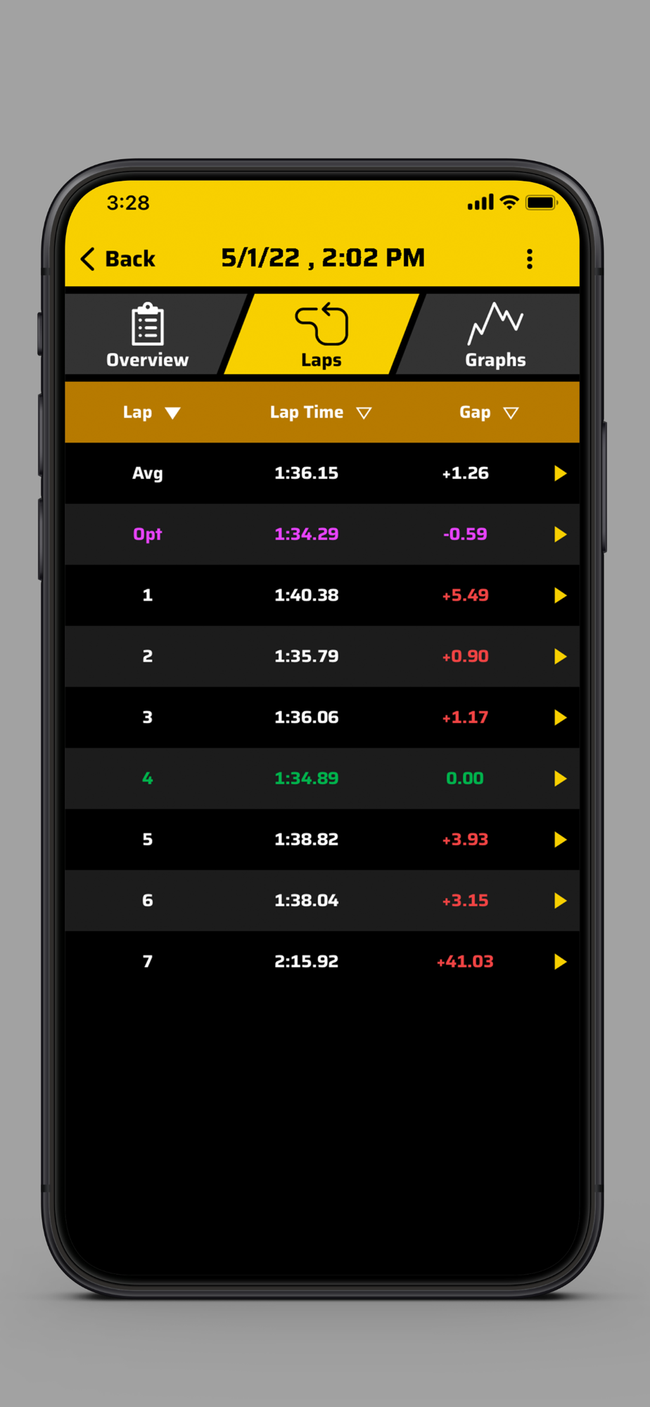 • Shows your session summaries, lap times, session weather conditions, lap-by-lap data and annual driving activity metrics