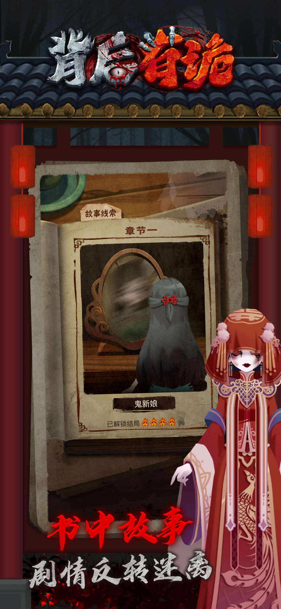 《背后有诡》是一款恐怖题材的剧情类跑酷游戏,游戏中极具特色,中式解谜令人沉浸感满满。翻开神秘的故事书即可开启冒险之旅,玩家在游戏中扮演一名新娘,在诡异的老宅里不断的冒险探索,搜寻各种线索和道具,灵活的躲避各种危险,一步步破解各种谜题,成功的找到安全逃离的办法!