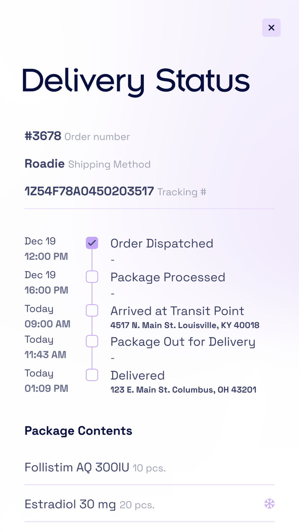 Pixel Care allows you to track your way through your cycle, view your medication deliveries and time your doses. You can also keep track of any medication-related symptoms and side effects you might experience.