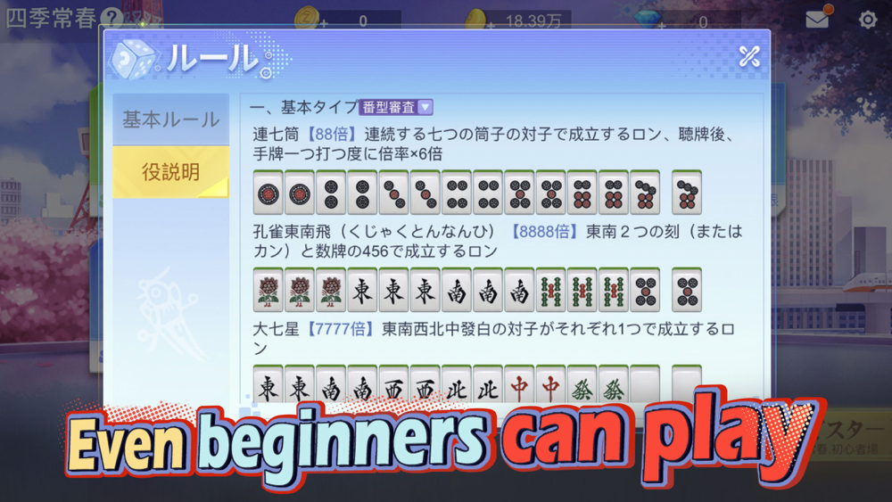 The simple operation and abundant assist functions allow even novice mahjong players to enjoy the fun of playing mahjong.