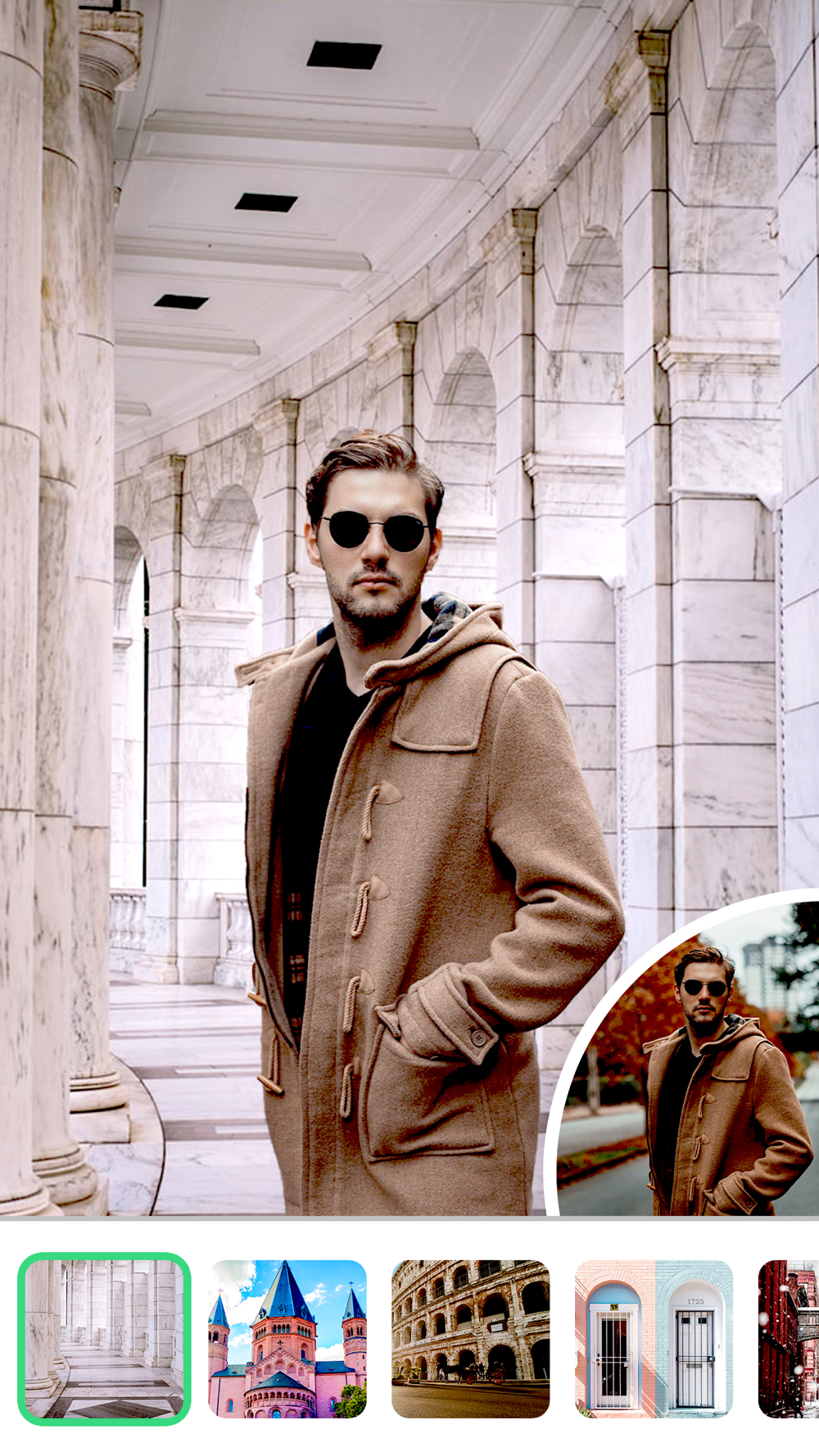 Travel anywhere in a second! Just upload your selfie, choose the background and let our neural network powered app do the rest.