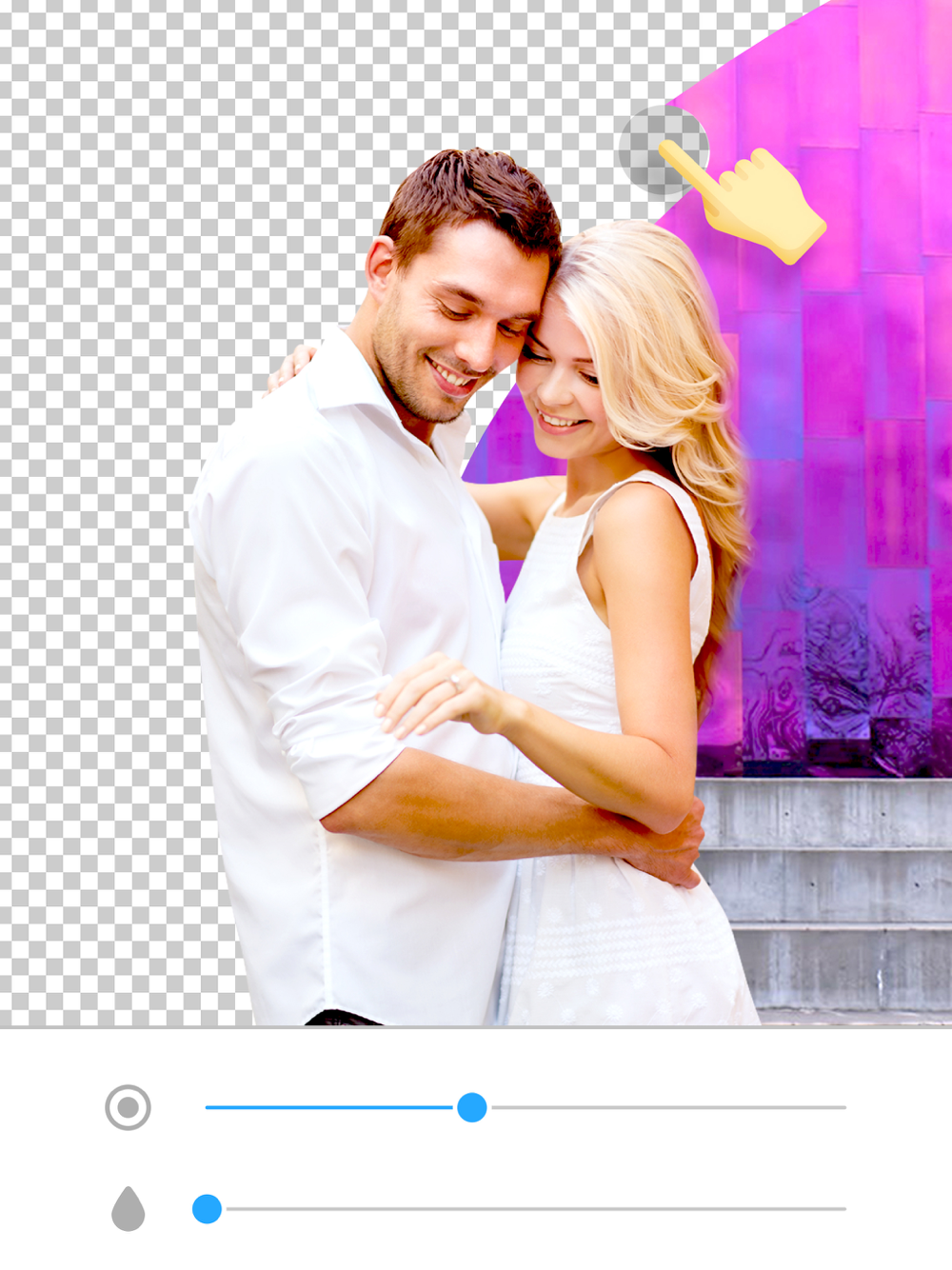 Background eraser can automatically remove background from photos or you can use eraser tool for photos to erase objects from photos by yourself.
